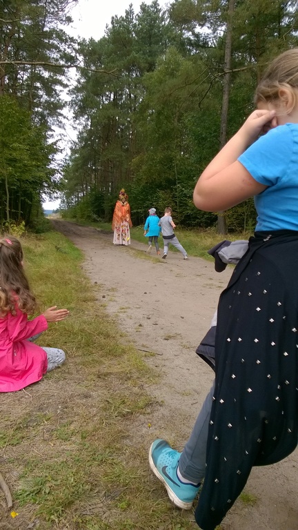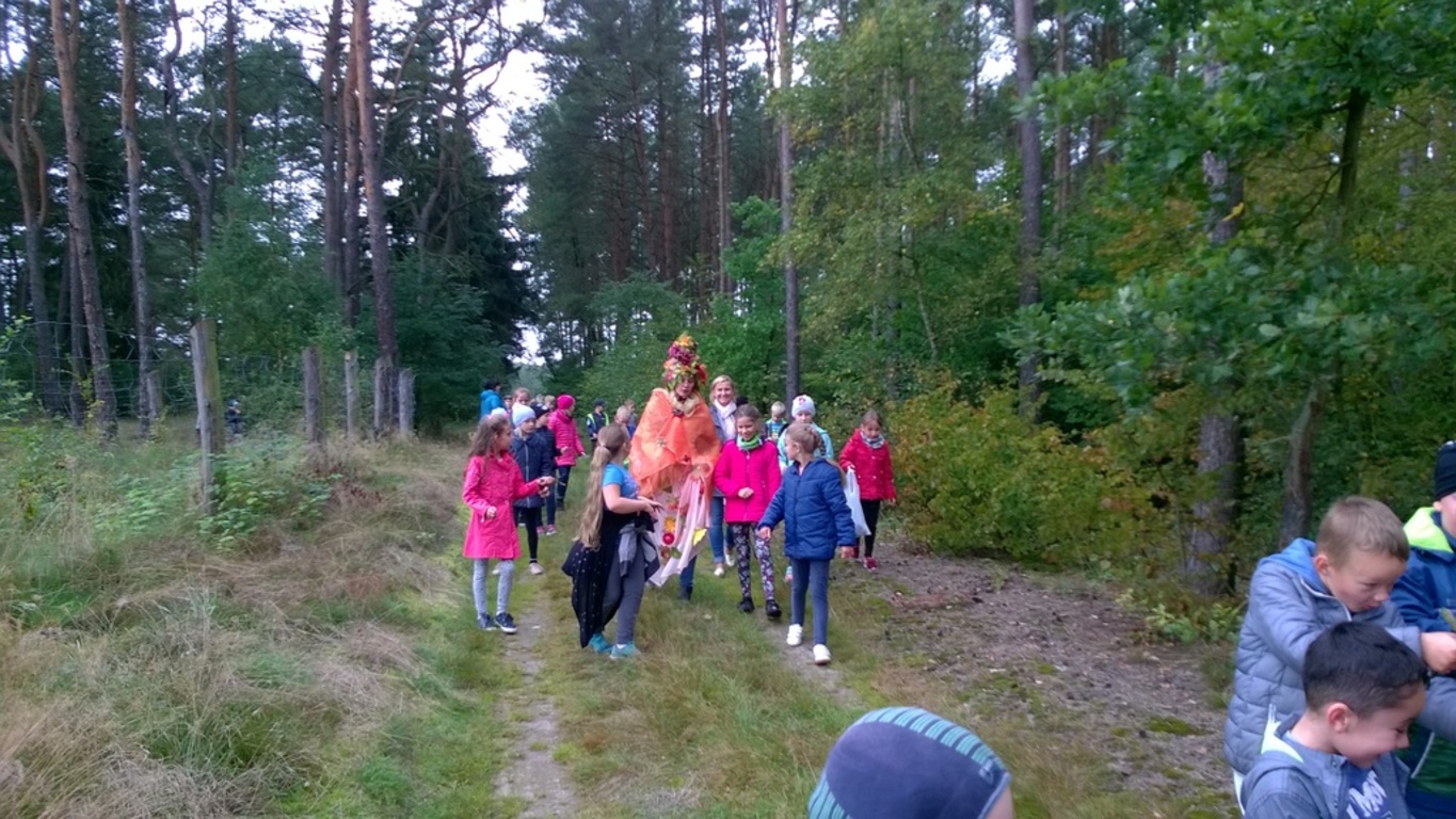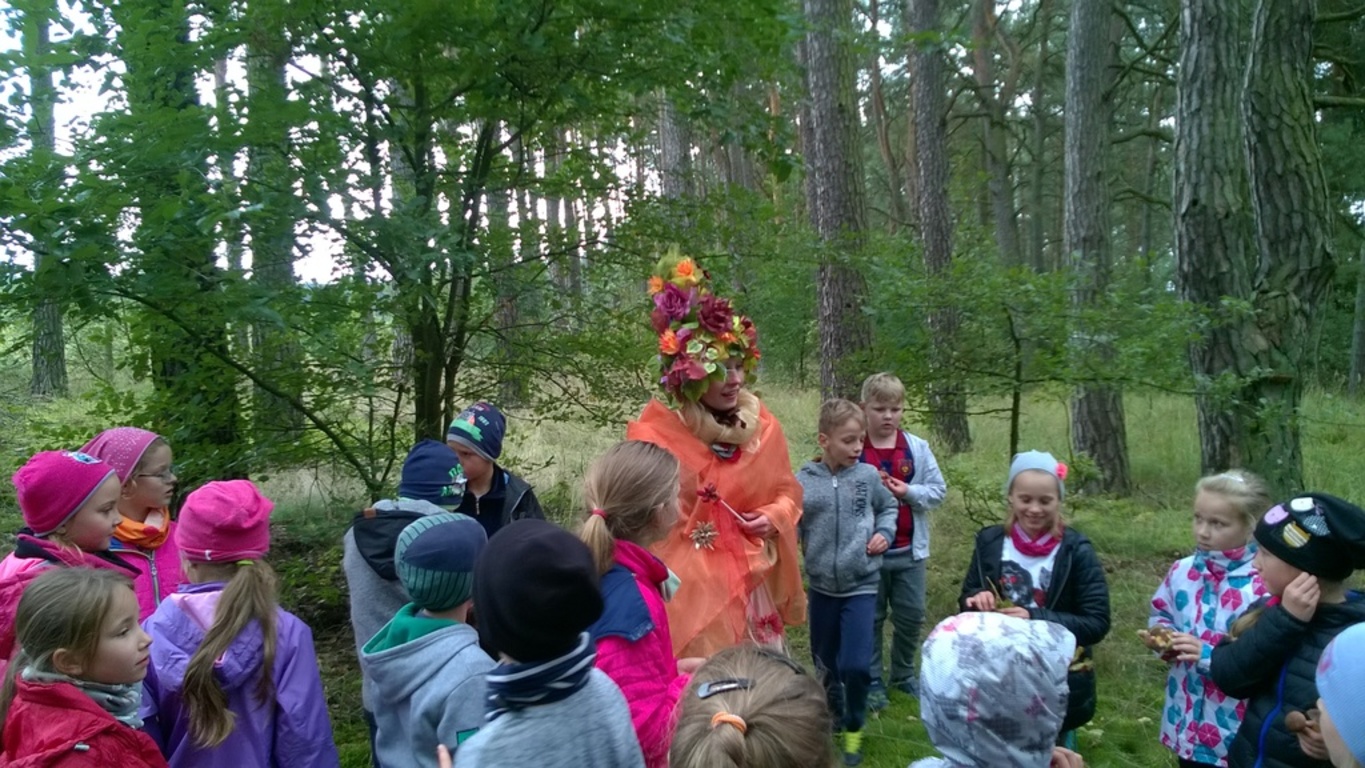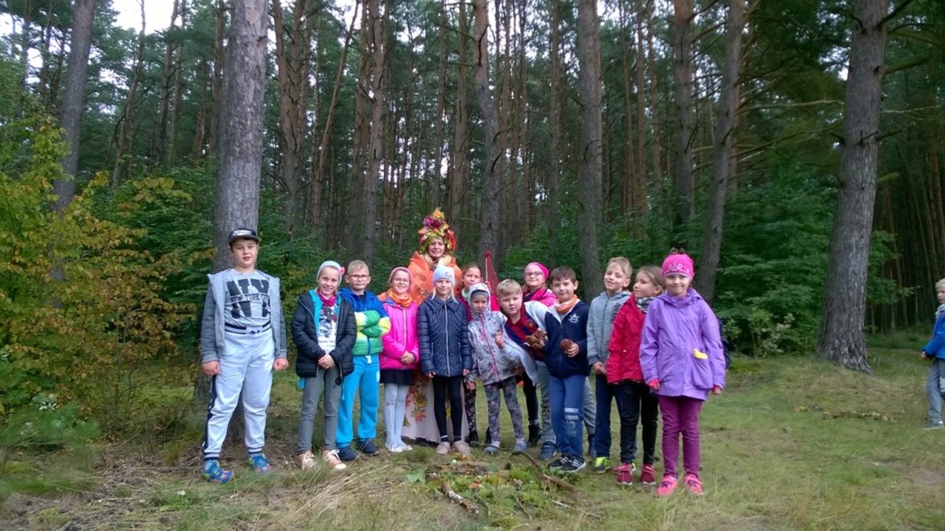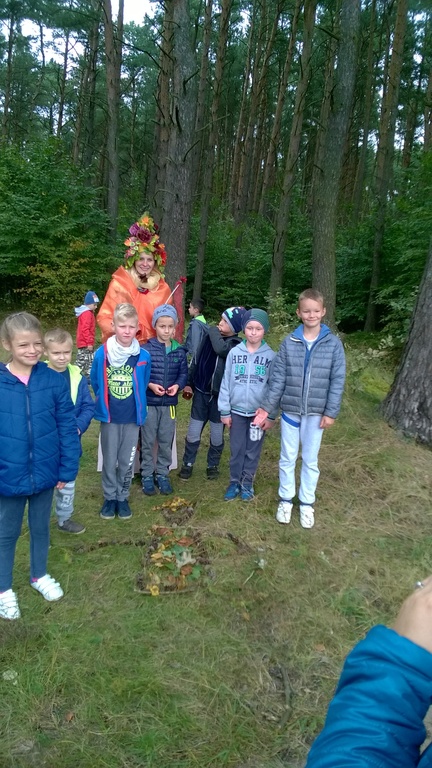 Uczniowie klasy II oraz klas IIIa i IIIb oficjalnie przywitali panującą porę roku. Oznak jesieni szukaliśmy podczas spaceru. Obserwowaliśmy zmiany zachodzące w przyrodzie, rozwiązywaliśmy jesienne łamigłówki oraz zmagaliśmy się w konkurencjach sportowych. Wielką niespodziankę sprawiła nam spacerująca po lesie Pani Jesień, która dołączyła do zabawy.