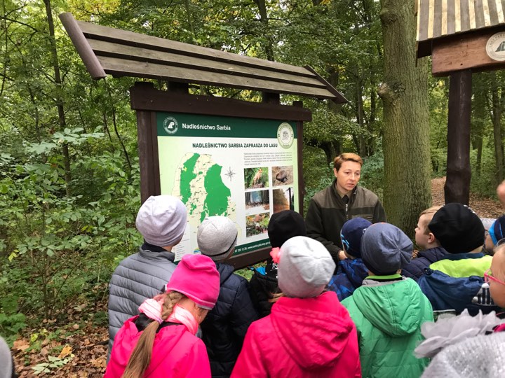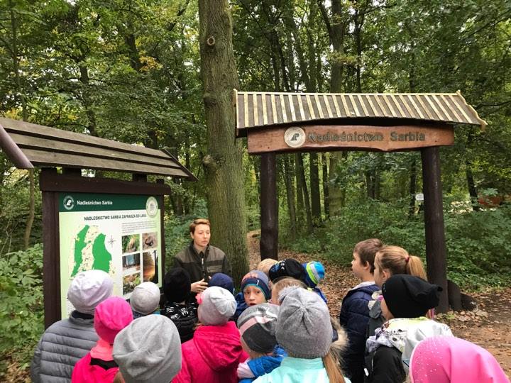 W czwartek 12.10.2017 r., uczniowie klasy II oraz III A i III B Szkoły Podstawowej w Romanowie Dolnym w ramach Święta Drzewa wybrały się na wycieczkę do Nadleśnictwa Sarbia. Pani Maria Spychała oraz Pan Maciej Krzysztofiak powitali nas tradycyjnym okrzykiem leśników i myśliwych „darz bór”, po czym przeprowadzili po ścieżce edukacyjnej, na której dzieci utrwaliły posiadane już wiadomości o lesie oraz zdobyły nowe. Uczniowie uczestniczyli również w warsztatach plastycznych na których wzbogaciły swoja wiedzę na temat budowy liści i zwierząt leśnych oraz wypełnili kart pracy na temat zasad zachowania się w lesie. Oglądając film edukacyjny „Dzik Rijo” utrwaliły nazwy leśnych zwierząt oraz funkcję i zadania jakie pełni w lesie leśniczy. Za posiadane wiadomości każdy uczeń otrzymał upominek. Na zakończenie ognisko z kiełbaskami oraz pobyt na placu zabaw. Dziękujemy za bardzo ciekawą lekcję przyrody i miłe przyjęcie.