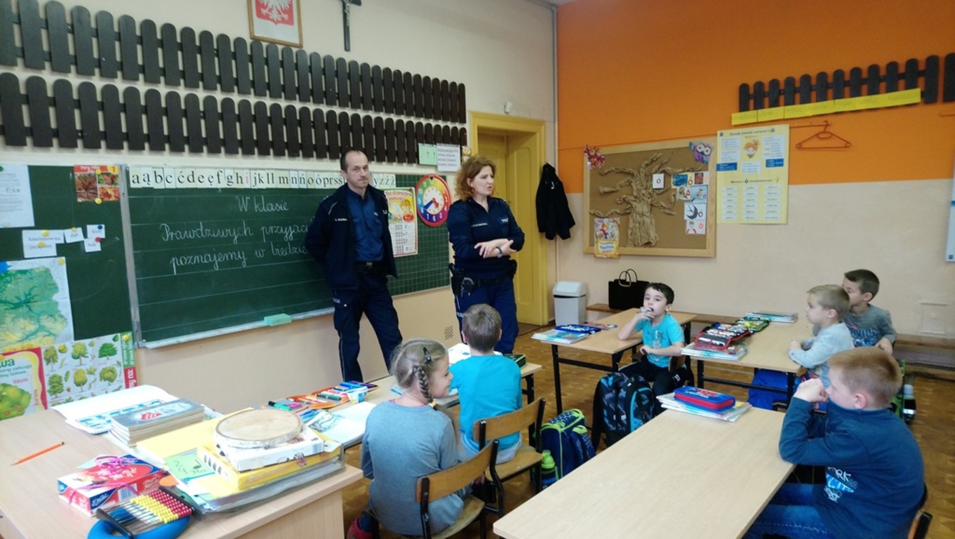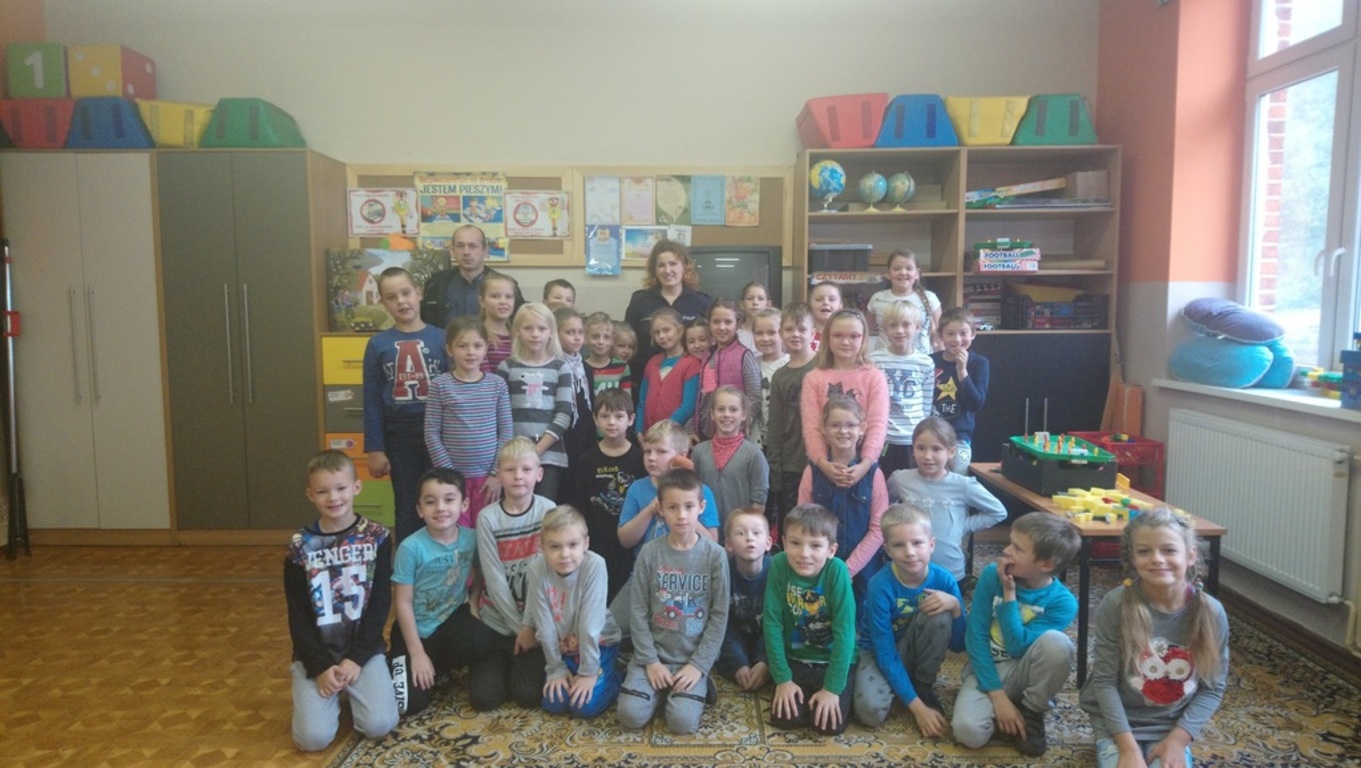 Dnia 18 października policjanci z Komendy Powiatowej Policji w Czarnkowie przeprowadzili pogadankę z uczniami kl. II, IIIa i IIIb w ramach programu "Kręci nas Bezpieczeństwo". Omówione zostały zasady bezpiecznego zachowania się na drodze, prawidłowego przechodzenia przez jezdnię oraz konieczność noszenia odblasków. Przypomniano zasady bezpieczeństwa podczas pobytu w szkole, w domu i w drodze do szkoły.Policjanci przestrzegli również dzieci przed zagrożeniami, jakie niosą za sobą rozmowy z nieznajomymi osobami. Gratulujemy dzieciom, które wykazały się dużą znajomością zasad bezpieczeństwa, a naszym gościom dziękujemy za wizytę.