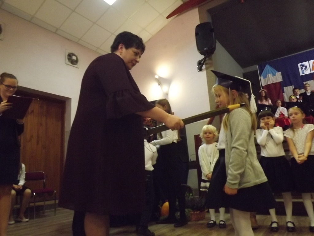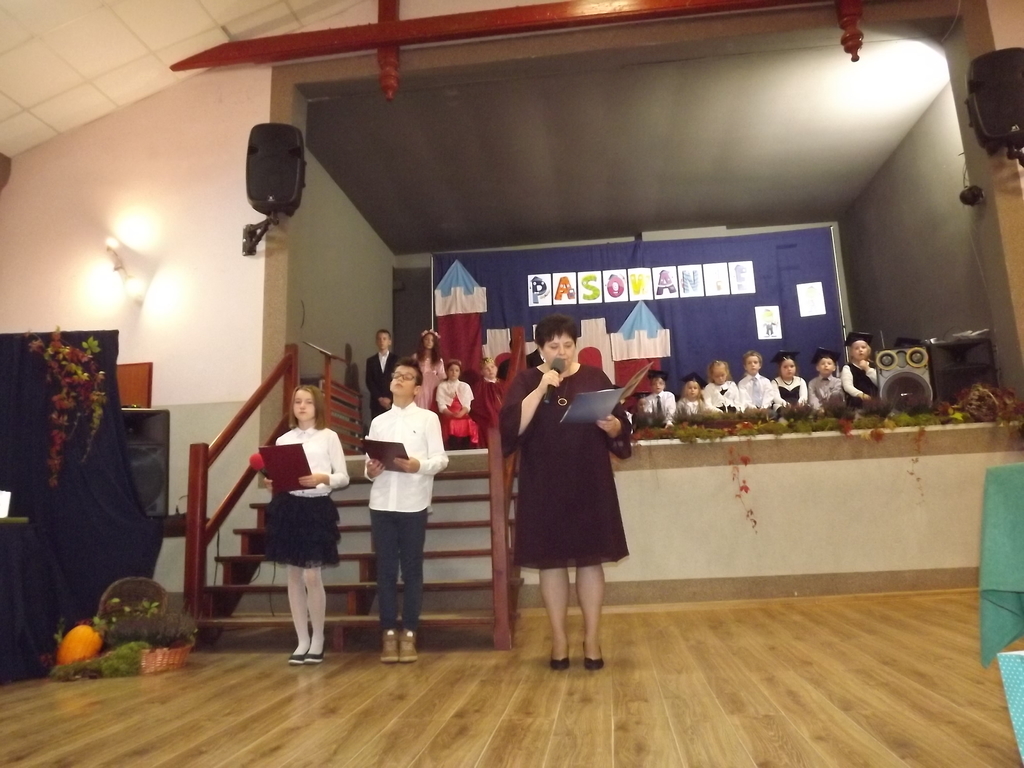 13 października w naszej szkole uczciliśmy Dzień Edukacji Narodowej połączony z uroczystym Pasowaniem na Ucznia klasy I. Część artystyczna przygotowana przez uczniów I i VI klasy zabrała widzów do królestwa Szkołolandii. Najmłodsi musieli sprostać zadaniom, by uzyskać miano ucznia. Po wykonaniu wszystkich zadań pani dyrektor uroczyście dokonała aktu pasowania i oficjalnie powitała uczniów klasy I w progach Szkoły Podstawowej w Romanowie Dolnym. Uczniowie klasy I wpisali się do pamiątkowej księgi i otrzymali od pani wychowawczyni Małgorzaty Dreczki pamiątkowy dyplom. Nie obyło się bez gratulacji i upominków od kolegów i koleżanek, rodziców oraz zaproszonych gości.