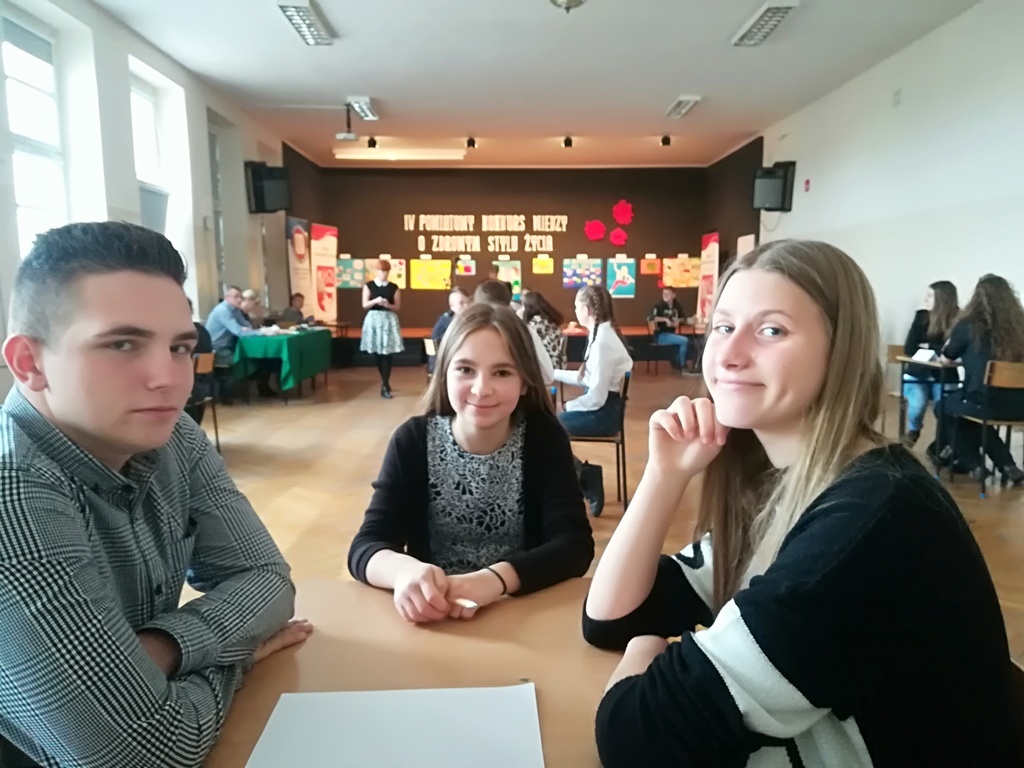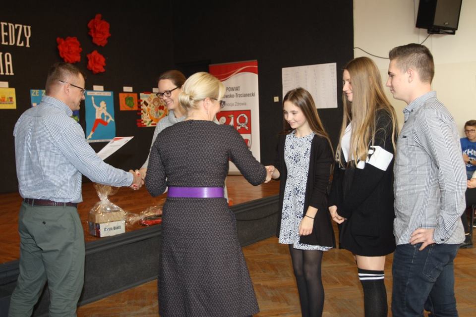Gospodarzem tegorocznej edycji zmagań drugich i trzecich klas gimnazjalnych była Szkoła Podstawowa nr 1 w Trzciance. IV Powiatowy Konkurs Wiedzy o Zasadach Zdrowego Stylu Życia zgromadził 10 szkół z całego powiatu. Naszą szkołę reprezentowali: Zuzanna Michalska kl.II oraz Anastazja Kubiak i Jacek Dąbrowski z kl.III i zdobyli 4 miejsce w klasyfikacji ogólnej.