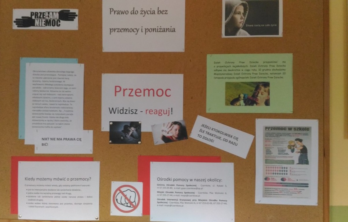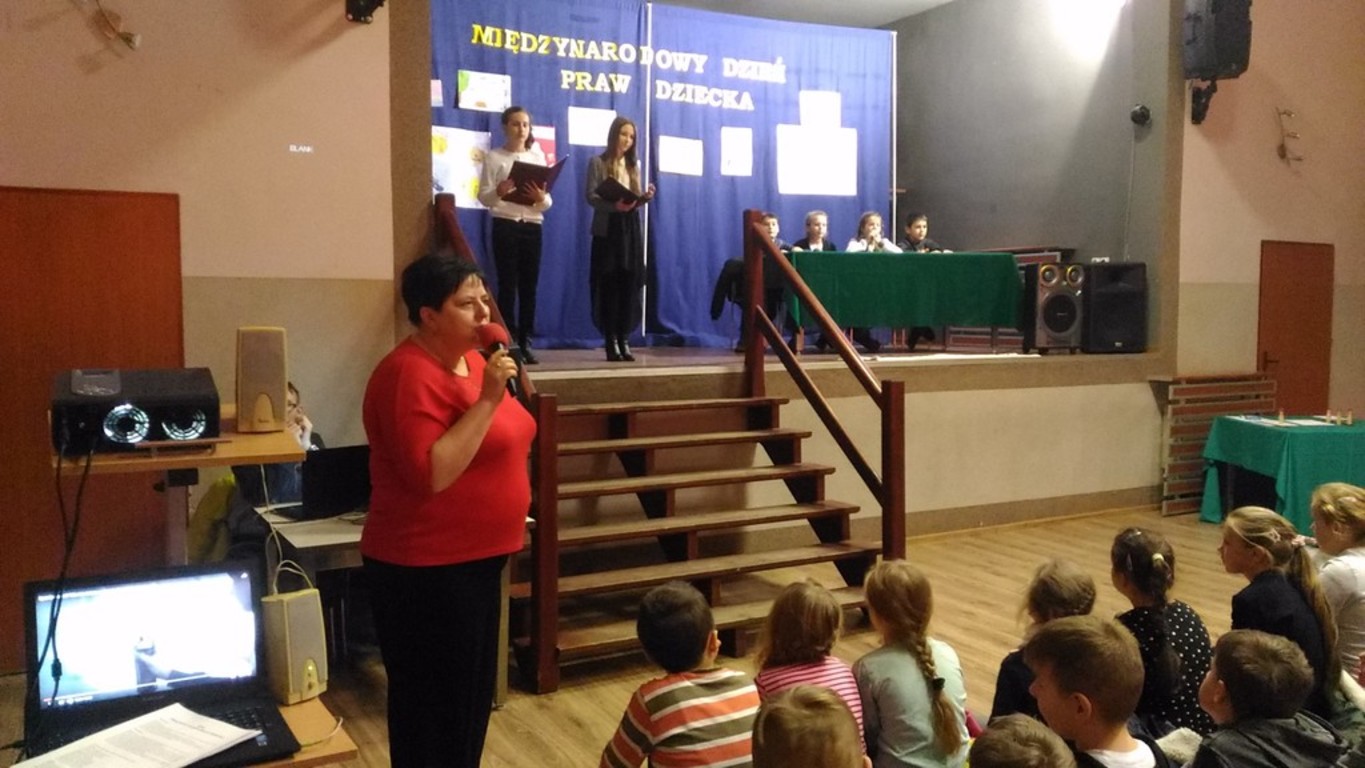 Uczniowie klas IV-VII pod kierunkiem pań: Joanny Wicher i Magdaleny Mroczek w sposób czytelny przedstawili, że każde dziecko ma swoje prawa jednakże z przywilejami wiążą się także obowiązki. Zaprezentowano spot kampani "Nie ma dzieci są ludzie" oraz wszyscy wspólnie zaśpiewali piosenkę Majki Jeżowskiej - Kolorowe dzieci. Głównym mottem całego przedsięwzięcia było: "Traktujcie innych tak jak sami chcecie być traktowani", ponieważ należy pamiętać, iż każdego prawa kończą się, gdy zaczynają się prawa drugiego człowieka.