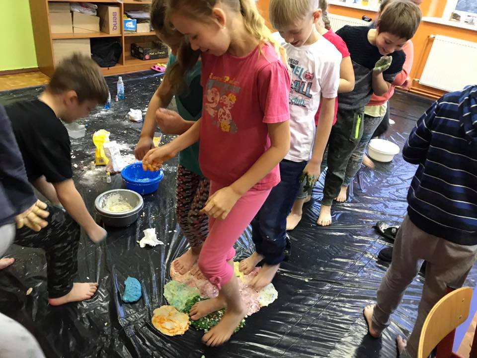 · Stwarzanie szans na dotykanie różnorodnych substancji, poznawanie nowych faktur