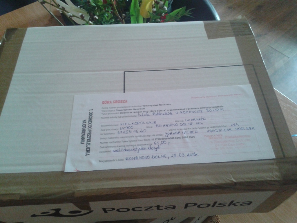 W szkole od grudnia do końca stycznia zbieraliśmy grosze, które zostały przekazane na cel charytatywny.