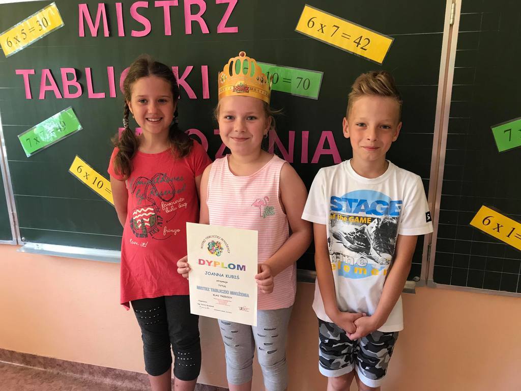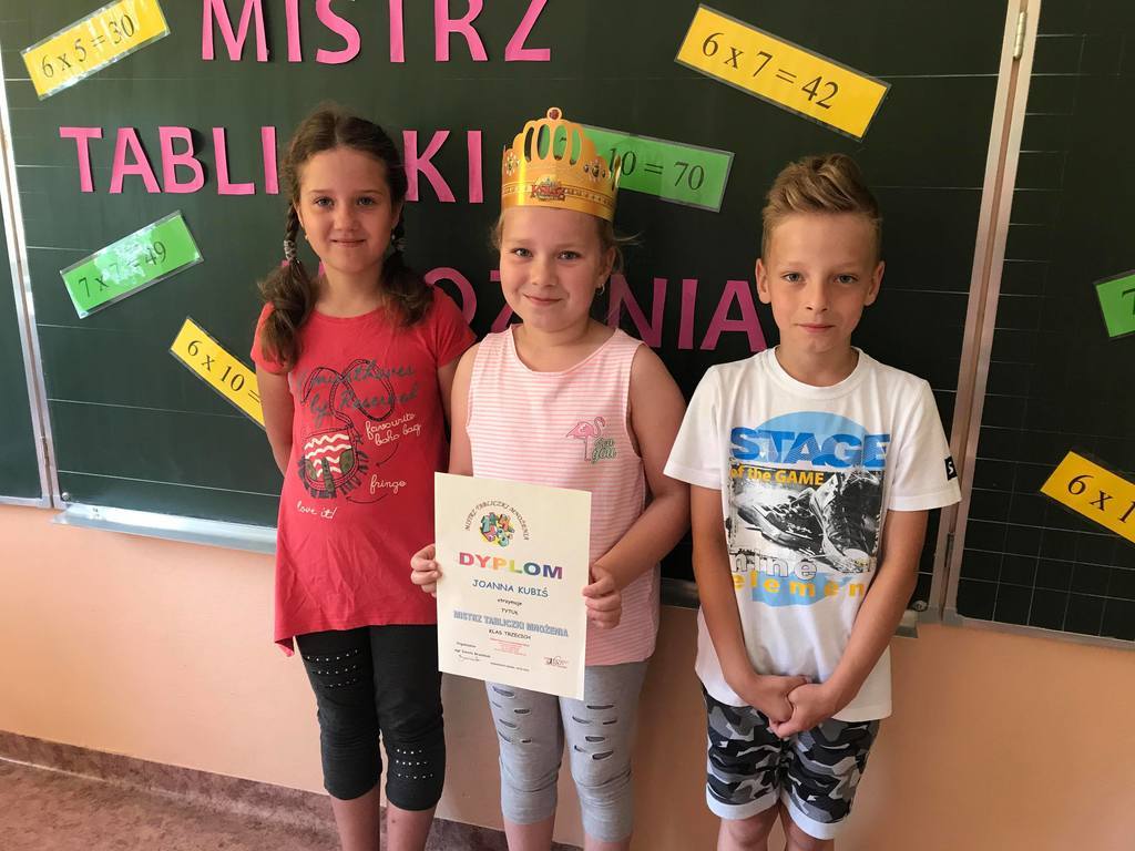 W dniach od 14 do 18.05.2018r. odbył się szkolny konkurs klas trzecich pt.: „Mistrz Tabliczki Mnożenia". Został wyłoniony mistrz, który nie tylko zna tabliczkę mnożenia, ale również musiał się wykazać sprytem i szybkością w obliczeniach.