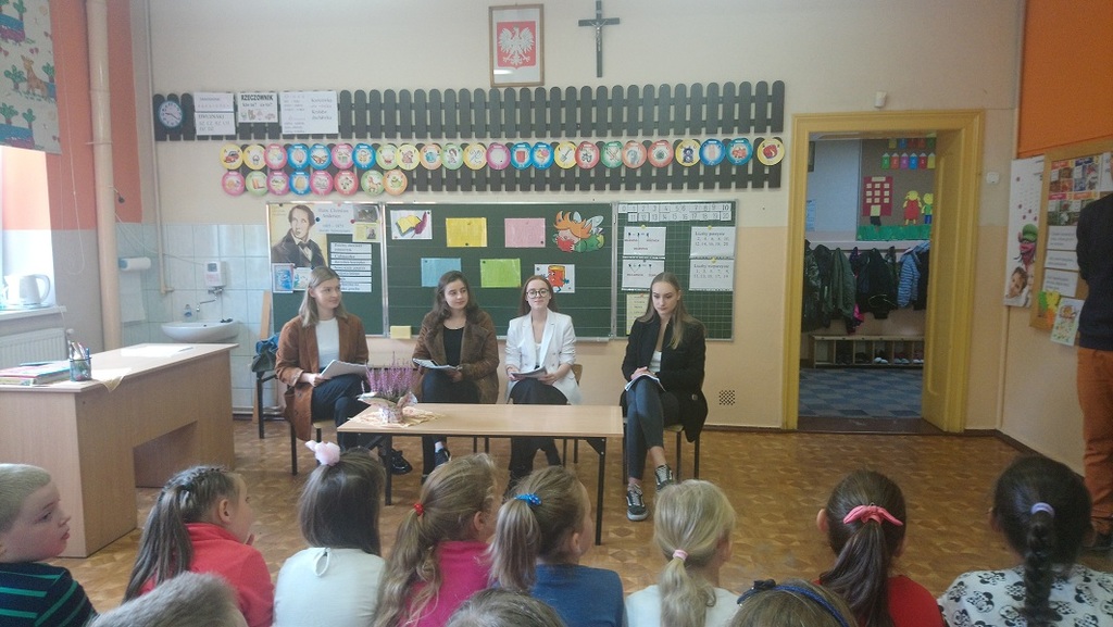 W piątek 28 września do naszej szkoły przybyli niezwykli goście - uczennice czarnkowskiego LO i jednocześnie aktorki Teatru TU wraz z opiekunem -panem Arturem Geremkiem-nauczycielem LO, prywatnie tatą ucznia klasy I- Franka Geremka. Spotkanie odbyło się w klasach I-III z okazji Ogólnopolskiego Dnia Głośnego Czytania. Goście zaprezentowali historię małej muszki, której całe życie trwało jeden dzień. Jeden dzień w otoczeniu przyjaciół, jeden dzień pełen przygód... Nasi uczniowie stanowili świetną widownię, a poza tym mieli okazję posłuchać pięknego i profesjonalnego czytania.