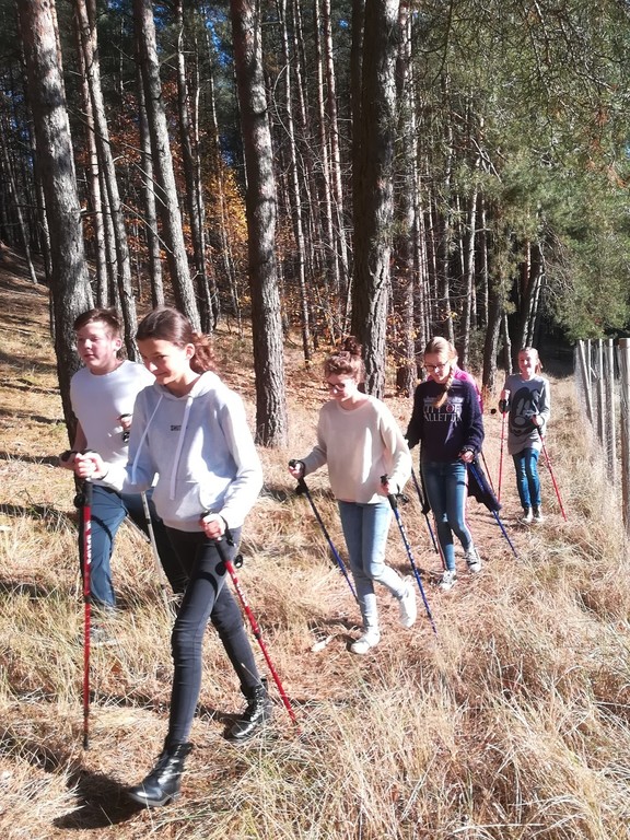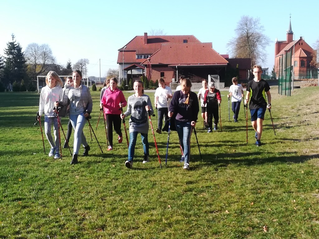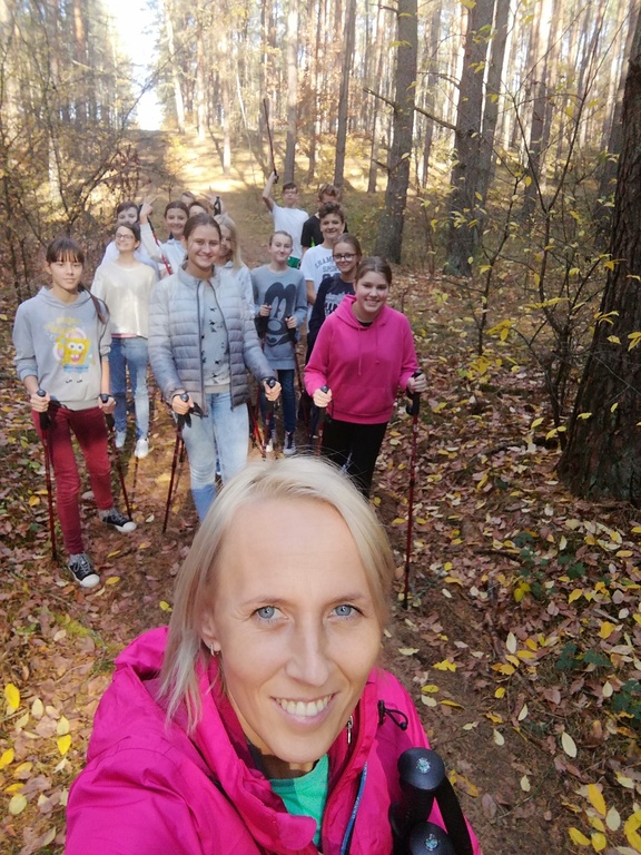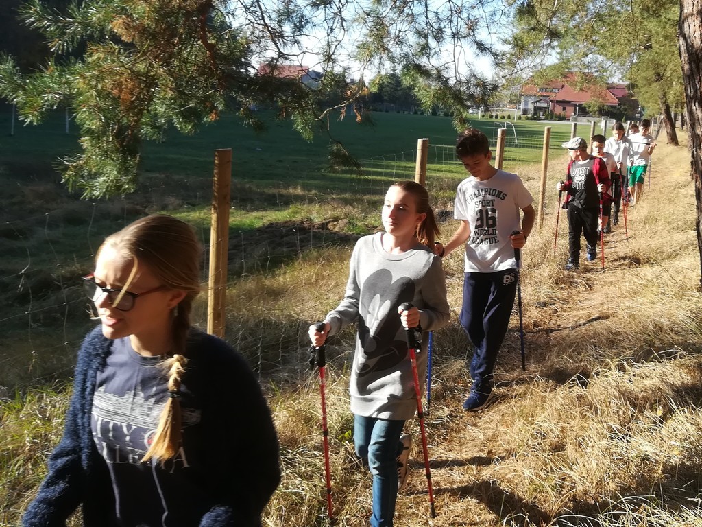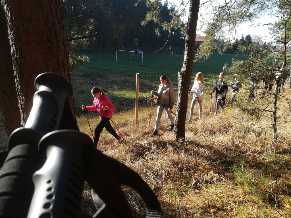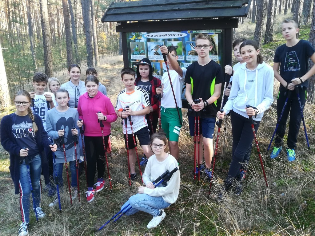 Wesoło, przyjemne, na świeżym powietrzu, dokładnie tak rozpoczęliśmy naszą przygodę z kijami nordic walking. Klasa siódma z dużym entuzjazmem i zapałem maszeruje i zwiedza okolicę w przepięknej jesiennej aurze.