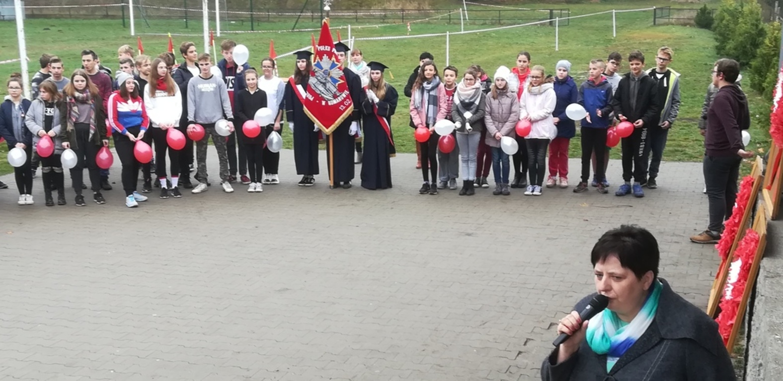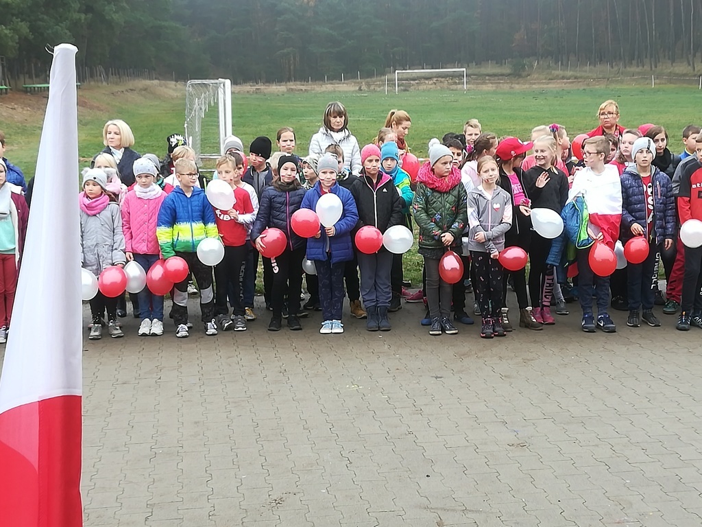 9 listopada 2018 r. oficjalnie rozpoczęliśmy w naszej szkole obchody 100-rocznicy odzyskania niepodległości przez Polskę. Z tej okazji zorganizowaliśmy w naszej szkole bieg niepodległości „TO DLA NIEJ” pod kierunkiem pani Małgorzaty Feciuch i Emilii Ciesiółka. W biegu uczestniczyli uczniowie z poszczególnych klas z podziałem na płeć, a także chętni rodzice. Uroczystość otworzyła dyrektor szkoły pani Róża Wesołek witając wszystkich. Przed biegiem o godz.11:11 cała społeczność szkolna,zgromadzeni nauczyciele, rodzice, opiekunowie odśpiewali wspólnie czterozwrotkowy hymn narodowy, po czym nastąpiła wspólna rozgrzewka.