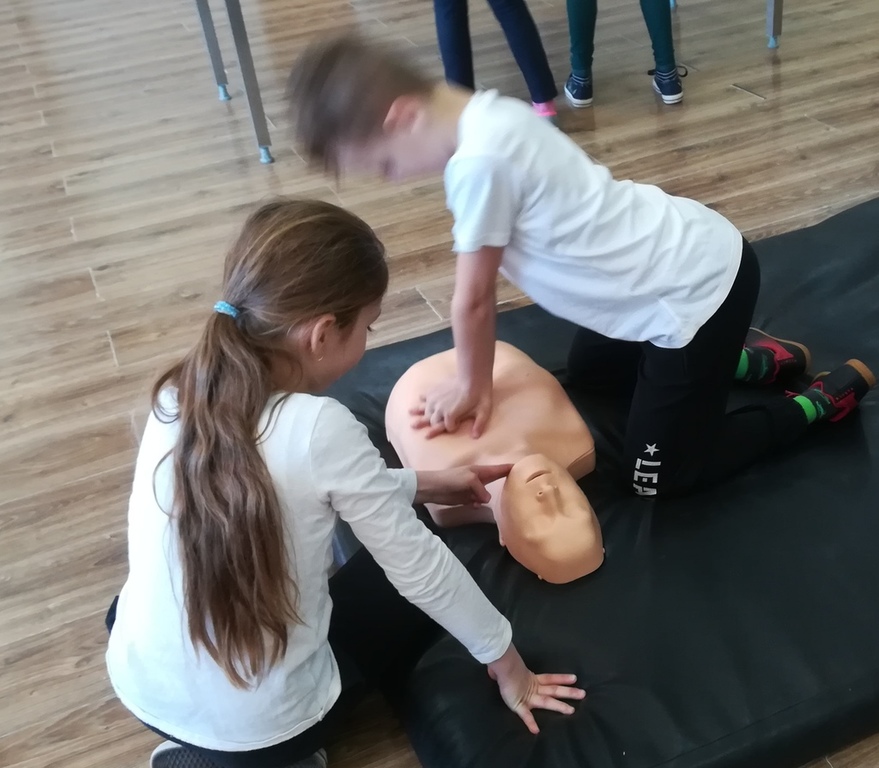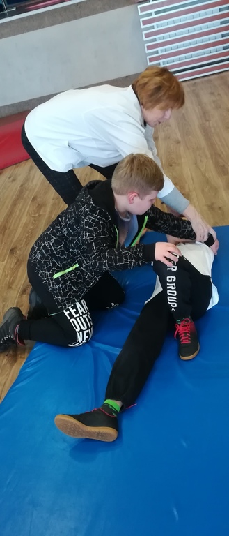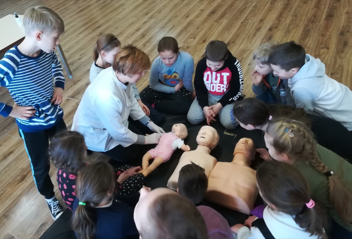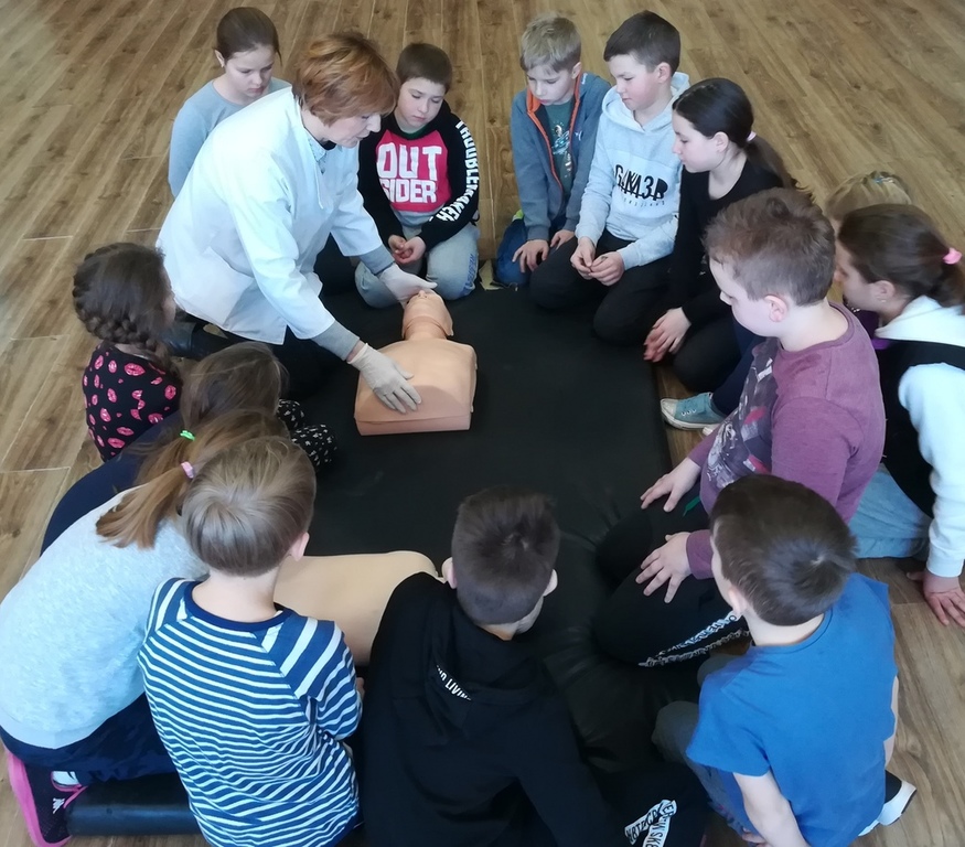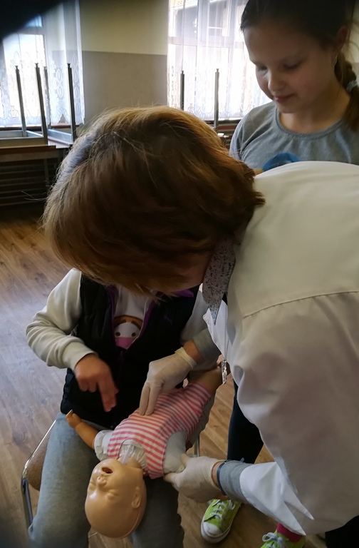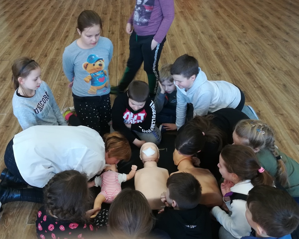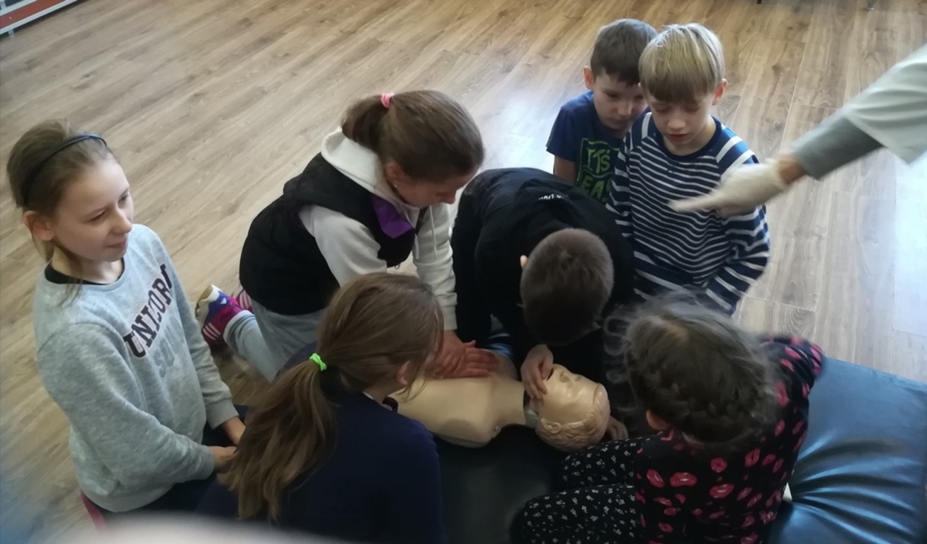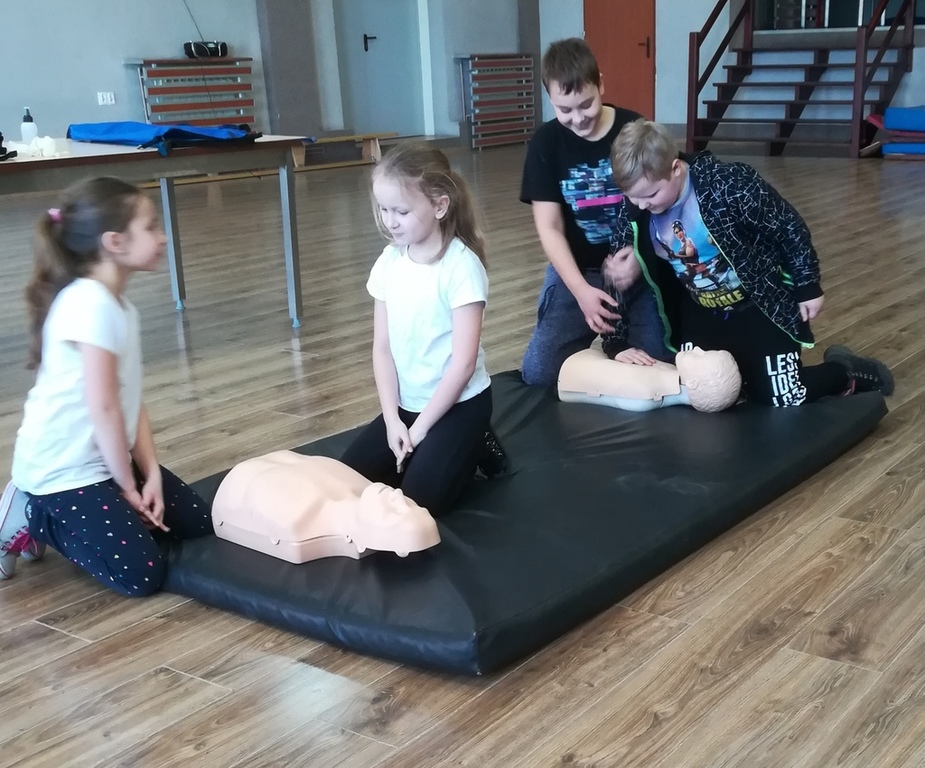 W dniu 20 marca 2019 r. roku uczniowie klas: IVa i IV b na lekcji wychowania fizycznego uczestniczyli w spotkaniu warsztatowym na temat pierwszej pomocy przedmedycznej. Zajęcia poprowadziła higienistka szkolna pani Hanna Budek. Celem zajęć było zapoznanie z podstawowymi zasadami udzielania pierwszej pomocy, wykształcenie poczucia odpowiedzialności za siebie i innych, uwrażliwienie na krzywdę drugiego człowieka, a przede wszystkim zaszczepienie idei niesienia bezinteresownej pomocy. Zaplanowane cele zajęć zrealizowano. Została poszerzona wiedza i umiejętności uczniów na temat udzielania pierwszej pomocy. Poznali ogólne zasady postępowania na miejscu wypadku. Uczyli się oceniać zagrożenie, kiedy i jak wezwać pomoc oraz ocenić, czy osoba poszkodowana oddycha. Zapoznali się z tzw. „Łańcuchem przeżycia”. Atrakcją dla uczniów był z pewnością aktywny udział w spotkaniu, podczas którego mogli nie tylko zadawać pytania, ale także kształcić praktyczne umiejętności wykonywania np. masażu serca (na fantomach niemowlaka, dziecka i osoby dorosłej), ćwiczyli na fantomie uciskanie klatki piersiowej i wdechy , a także tzw. „pozycję boczną ustaloną”. Uczniowie mieli okazję dowiedzieć się, jakim sprzętem posługuje się ratownik medyczny, do czego służą poszczególne elementy wyposażenia, a także dowiedzieli się jak postępować w sytuacji zakrztuszenia. Taka forma lekcji i poszerzenia wiedzy jest najcenniejsza, sprawiła dzieciom dużo satysfakcji i na pewno zaaowocuje w przyszłości.