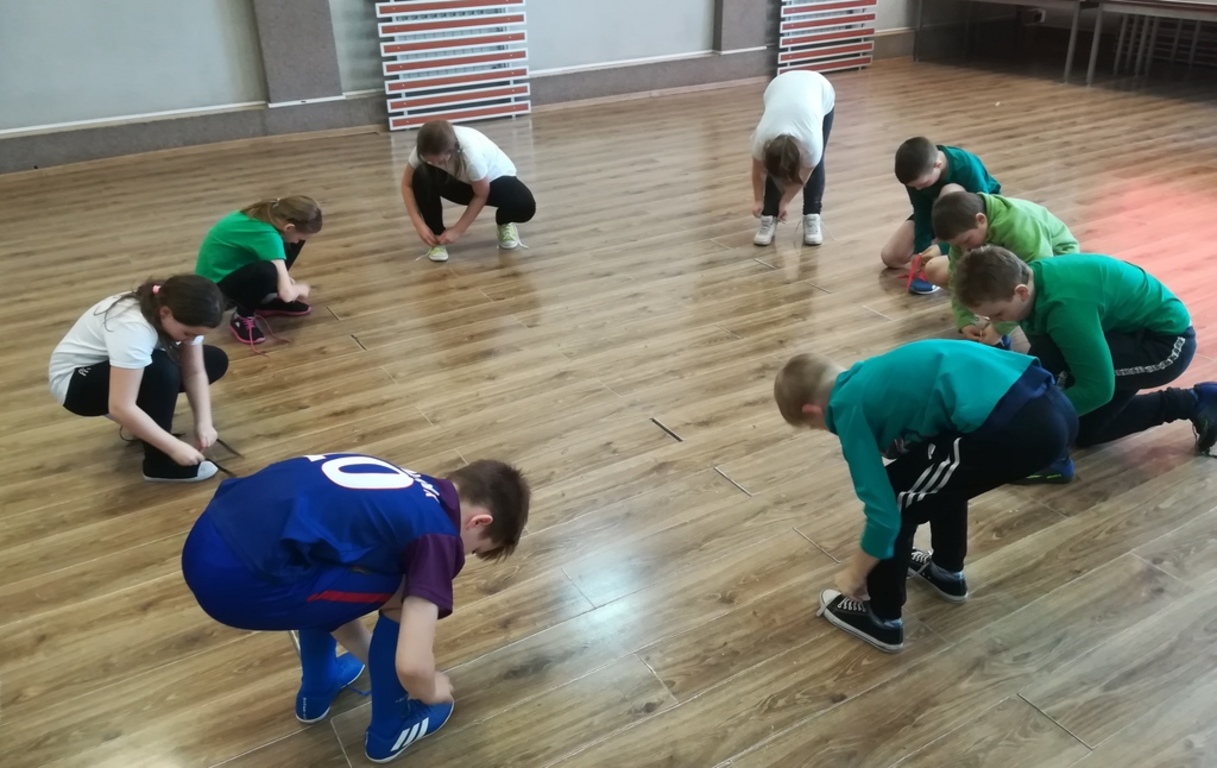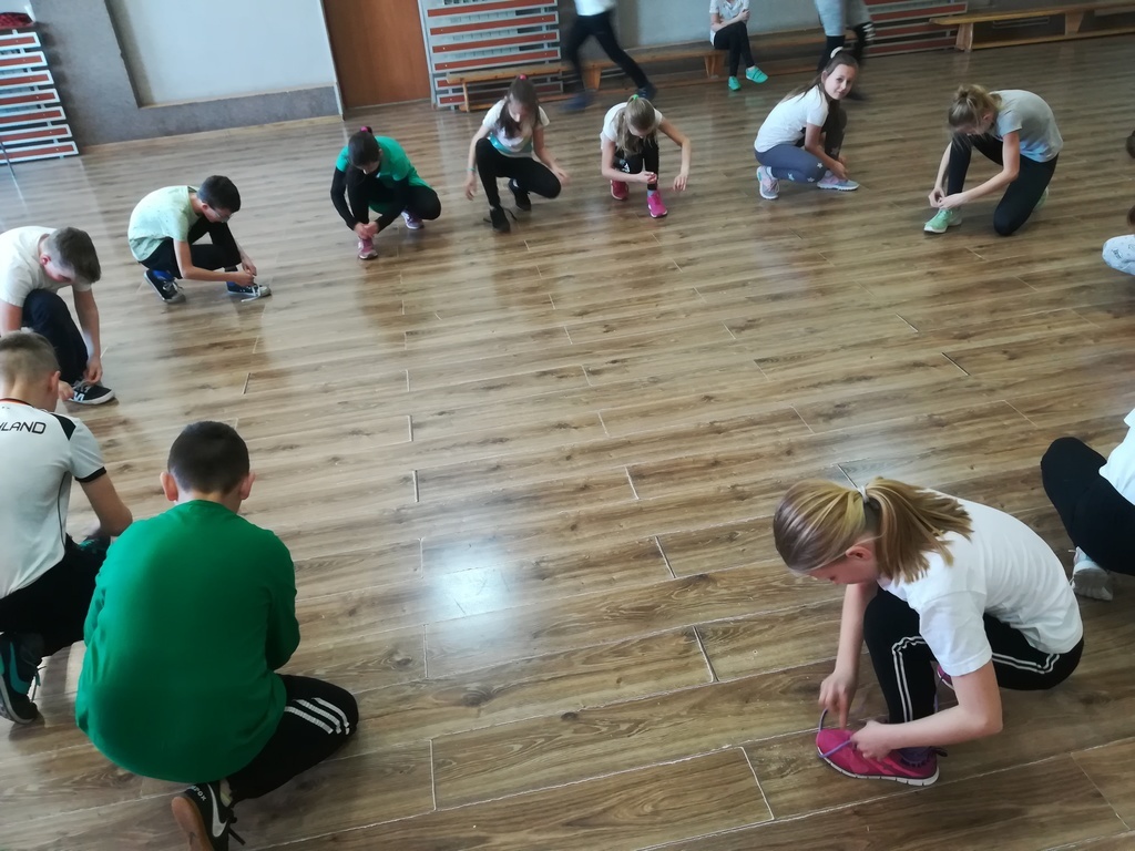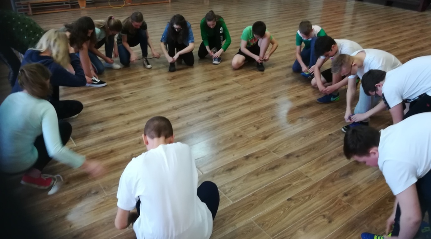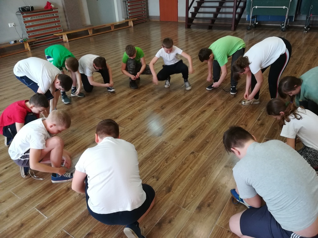 "Kto pierwszy"-Sznurowanie butów.