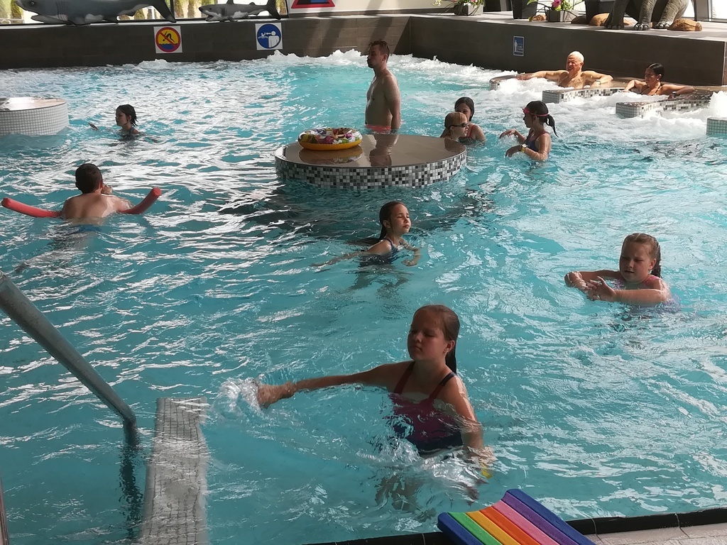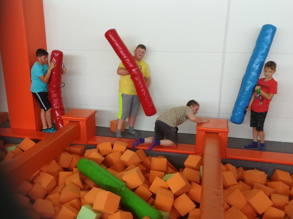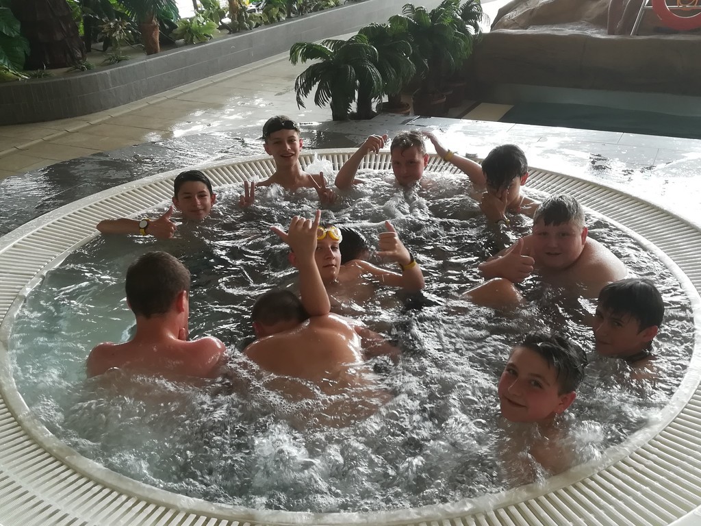 10 czerwca uczniowie z klas: 4A, 4B i 6 uczestniczyli w wycieczce do Poznania i Tarnowa Podgórnego.Celem wyjazdu do stolicy Wielkopolski był park trampolin Jump Arena - jedno z najpopularniejszych miejsc na sportowo-rozrywkowej mapie Poznania. Ta popularna forma aktywności fizycznej dostarczyła uczestnikom wycieczki wielu niezapomnianych wrażeń. Uczniowie korzystali z szeregu atrakcji, m.in. ścieżek akrobatycznych, koszów do wsadów, trampolin sportowych oraz basenów wypełnionych gąbkami. Pobyt w Jump Arena sprzyjał wyrabianiu nawyku aktywnego spędzania wolnego czasu, rozwijania zainteresowania sportem, a przede wszystkim uświadomił młodzieży, iż skoki na trampolinie to nie tylko wspaniała zabawa, ale również doskonałe ćwiczenie dla mięśni nóg. Następnie udaliśmy się do Tarnowa Podgórnego na Tarnowskie Termy. Pobyt na basenie rozpoczął się od oswojenia z wodą, który otaczały egzotyczne zwierzaki. W aquaparku uczniowie mogli zakosztować wodnych kąpieli, masaży biczami wodnymi, a także szybkości na różnego typu zjeżdżalniach. Dużą popularność zdobył basen na świeżym powietrzu z hydromasażem i biczami wodnymi . Podczas pobytu grupa doskonaliła umiejętności pływackie , a także widoczna była integracja grupy, co dobrze wpływa na relacje między rówieśnikami. Wspólnie spędzony czas był z pewnością dla wszystkich uczestników wycieczki okresem radości i przyjemnych wrażeń. A po basenie był czas na posiłek:-)