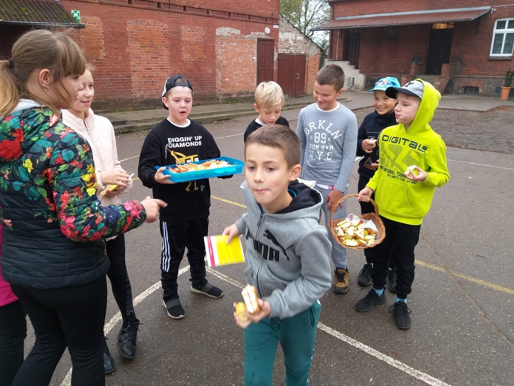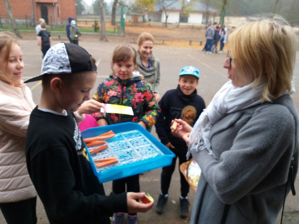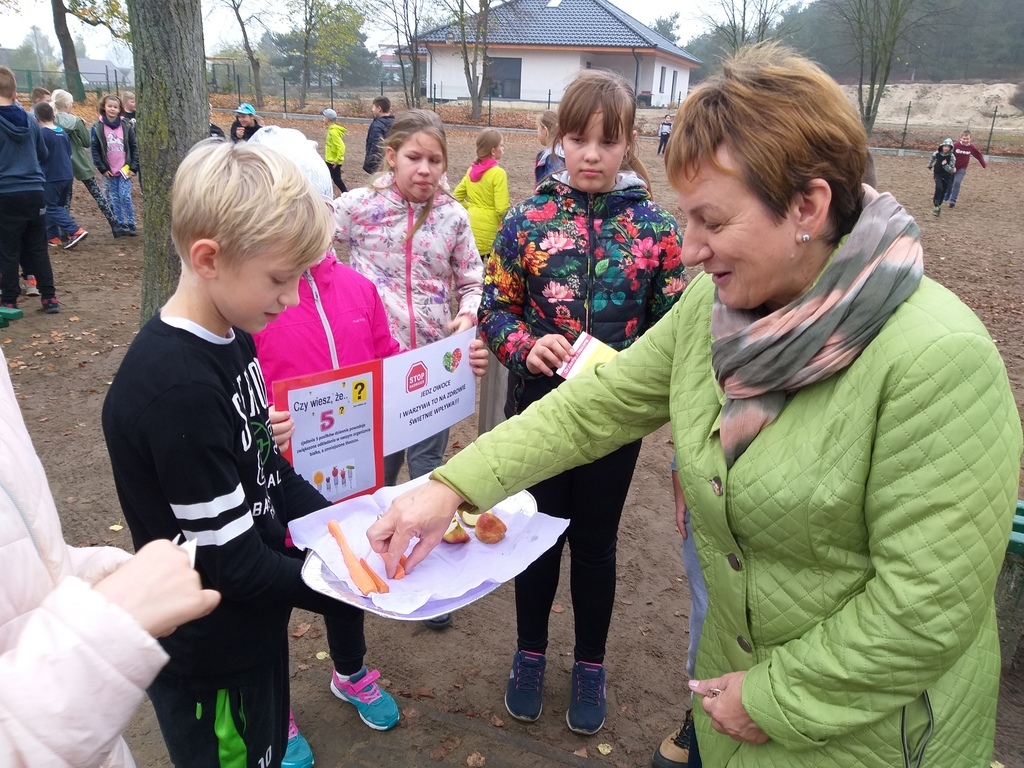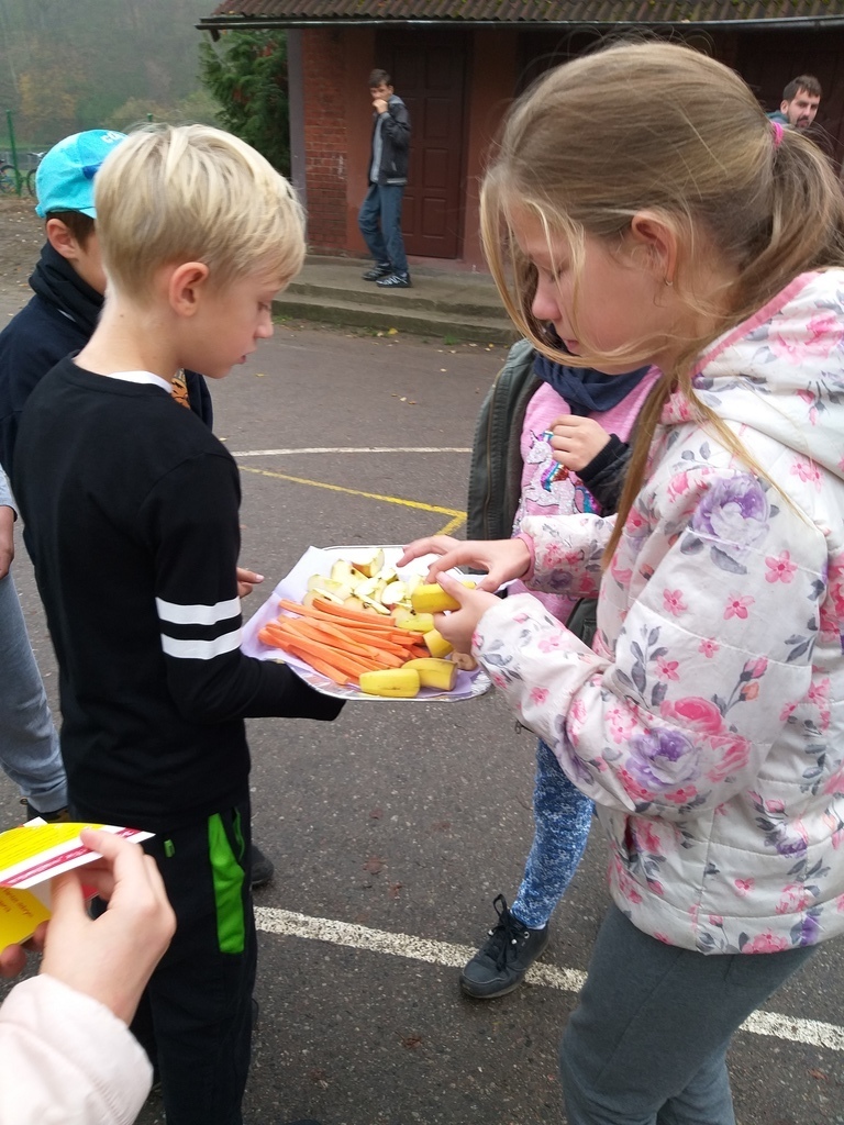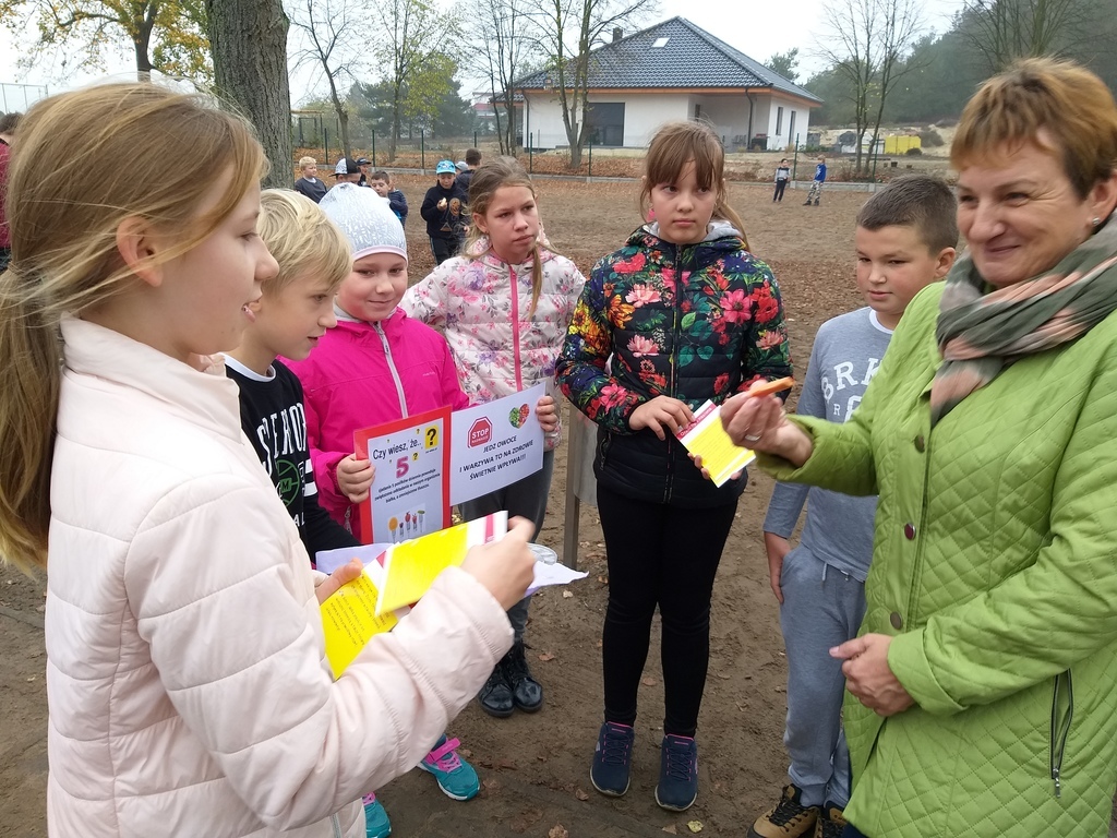 Uczniowie mieli okazję poznać i utrwalić sobie zasady prawidłowego odżywiania, zapoznali się z niekojącymi danymi statystycznymi dotyczącymi nadwagi i otyłości w Polsce, czy przyczynami problemu w związku z trybem życia, jaki prowadzi się w dzisiejszych czasach i konsekwencjami jakimi niesie za sobą brak podejmowania aktywności fizycznej i złe nawyki żywieniowe. Te wszystkie informacje dostępne były na korytarzu szkolnym. Uczniowie obliczali wskaźnik masy ciała BMI, wzięli udział w ankiecie pt. „Sprawdź czy dbasz o prawidłową postawę ciała- jaki jest Twój tryb życia”. Podejmowali różne aktywności fizyczne np. gry rekreacyjne na świeżym powietrzu, spacer w jesiennej aurze. Podczas „Muzycznych inspiracji”, które były głównym tematem lekcji wychowania fizycznego uczniowie tworzyli układy taneczne z wykorzystaniem takich przyborów jak: kapelusz, wstążka gimnastyczna, parasol, czapeczka. Swój poziom wiedzy mogli sprawdzić podczas rozwiązywaniu testu „ Wiedzy o zdrowiu”. Przygotowaliśmy dla naszej społeczności szkolnej kolorową degustację witaminową w postaci warzyw i owoców. Rozdawane zostały ulotki i hasła zachęcające do spożywania „5 posiłków dziennie”, a także do uprawiania sportu.