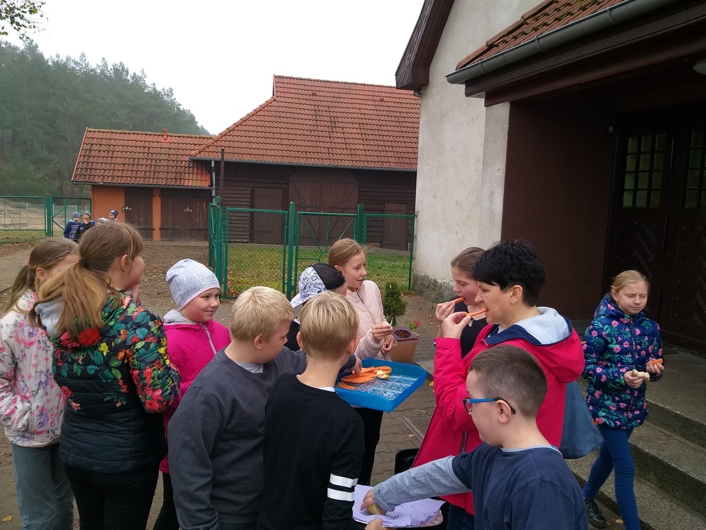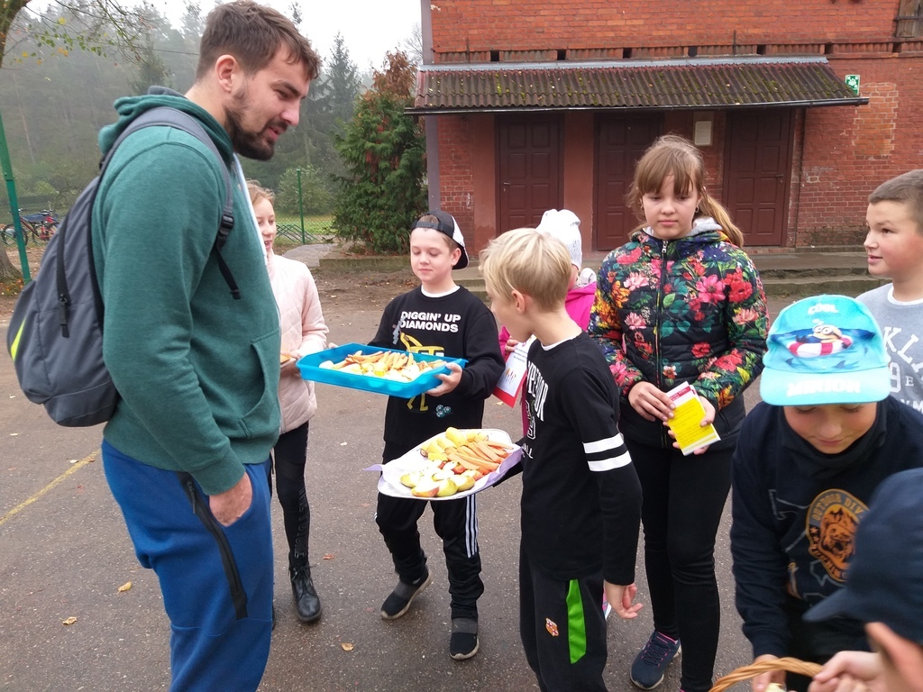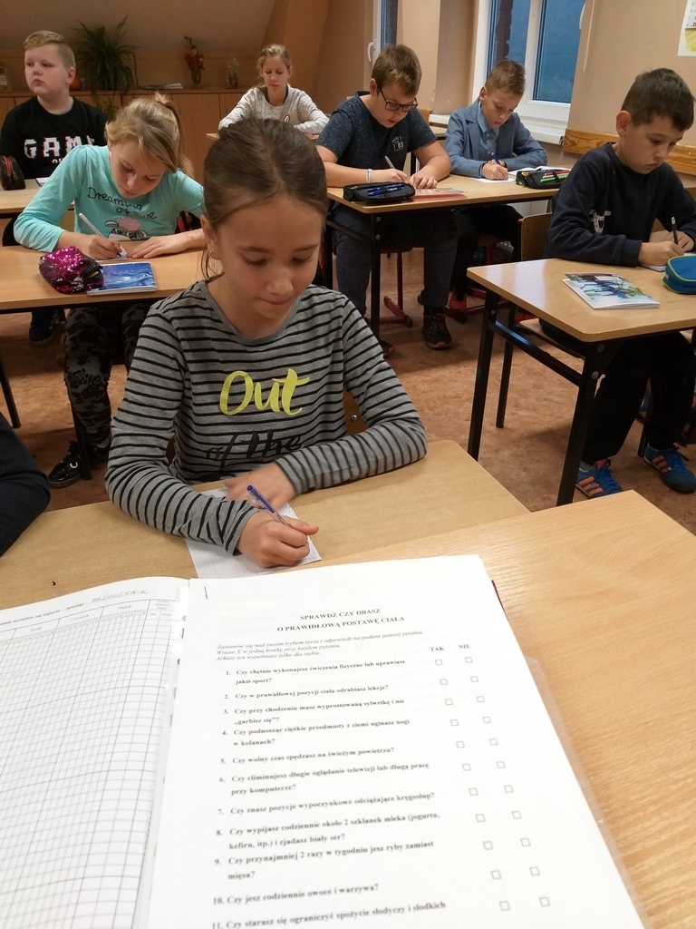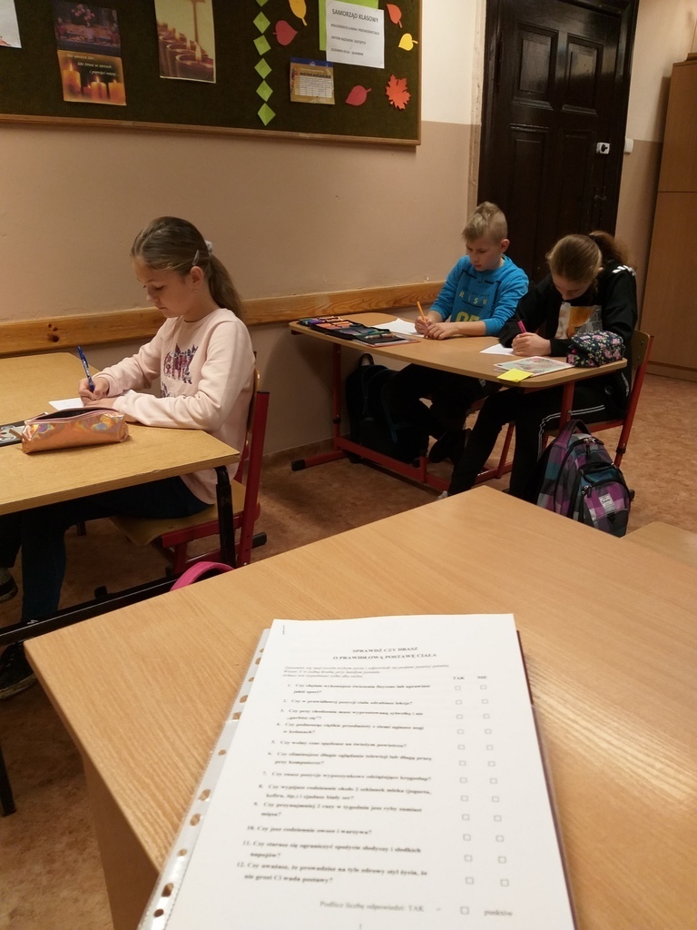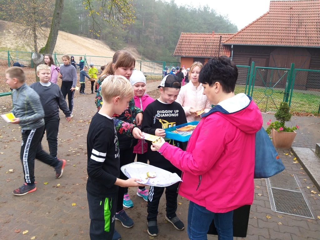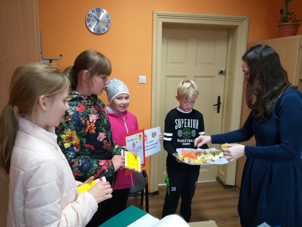 Uczniowie mieli okazję poznać i utrwalić sobie zasady prawidłowego odżywiania, zapoznali się z niekojącymi danymi statystycznymi dotyczącymi nadwagi i otyłości w Polsce, czy przyczynami problemu w związku z trybem życia, jaki prowadzi się w dzisiejszych czasach i konsekwencjami jakimi niesie za sobą brak podejmowania aktywności fizycznej i złe nawyki żywieniowe. Te wszystkie informacje dostępne były na korytarzu szkolnym. Uczniowie obliczali wskaźnik masy ciała BMI, wzięli udział w ankiecie pt. „Sprawdź czy dbasz o prawidłową postawę ciała- jaki jest Twój tryb życia”. Podejmowali różne aktywności fizyczne np. gry rekreacyjne na świeżym powietrzu, spacer w jesiennej aurze. Podczas „Muzycznych inspiracji”, które były głównym tematem lekcji wychowania fizycznego uczniowie tworzyli układy taneczne z wykorzystaniem takich przyborów jak: kapelusz, wstążka gimnastyczna, parasol, czapeczka. Swój poziom wiedzy mogli sprawdzić podczas rozwiązywaniu testu „ Wiedzy o zdrowiu”. Przygotowaliśmy dla naszej społeczności szkolnej kolorową degustację witaminową w postaci warzyw i owoców. Rozdawane zostały ulotki i hasła zachęcające do spożywania „5 posiłków dziennie”, a także do uprawiania sportu.