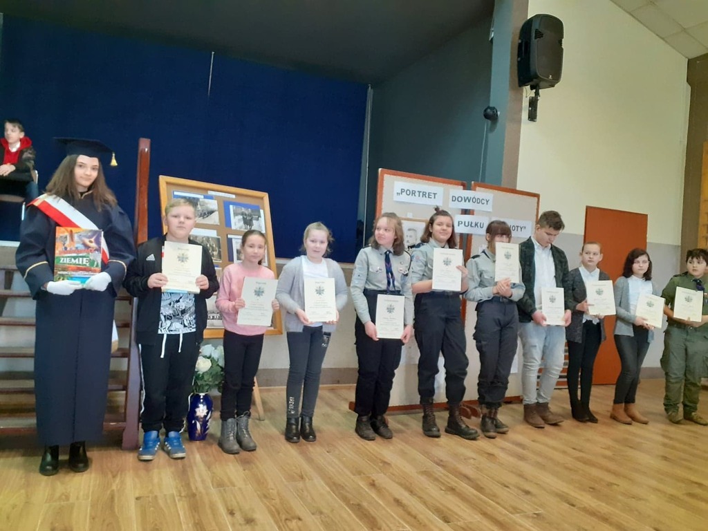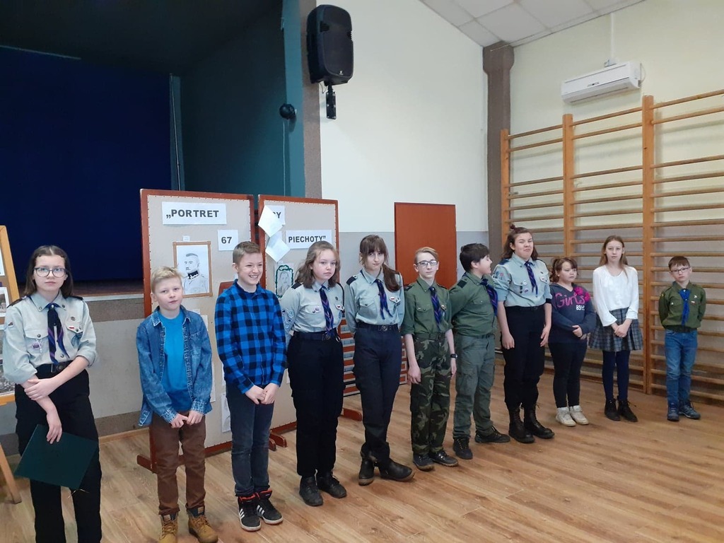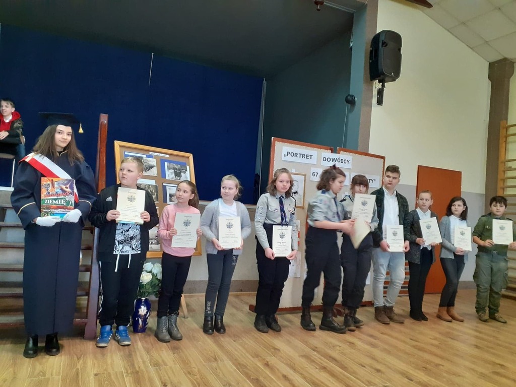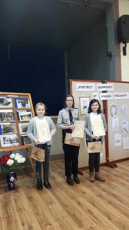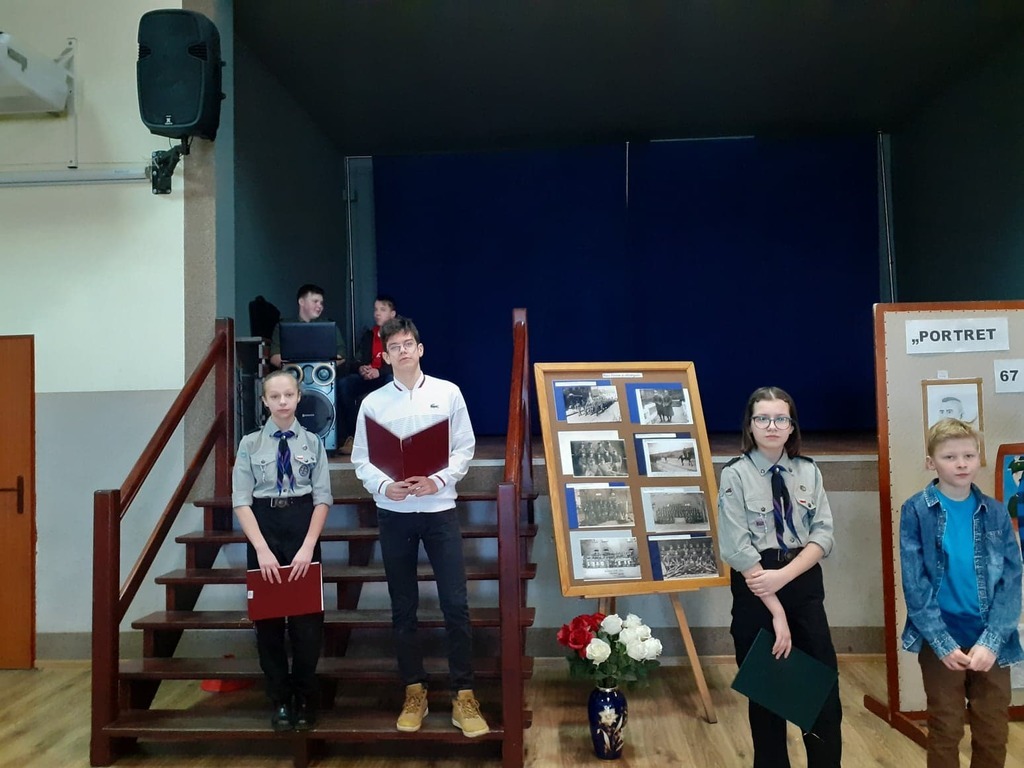 Tegoroczne obchody zaczęliśmy od Szkolnego Konkursu Wiedzy o Patronie i Szkolnego Konkursu Plastycznego ph; „ Portret Dowódcy 67. Pułku Piechoty”, których rozstrzygnięcie nastąpiło podczas krótkiego montażu w wykonaniu uczniów klas III-VIII w sali wiejskiej.