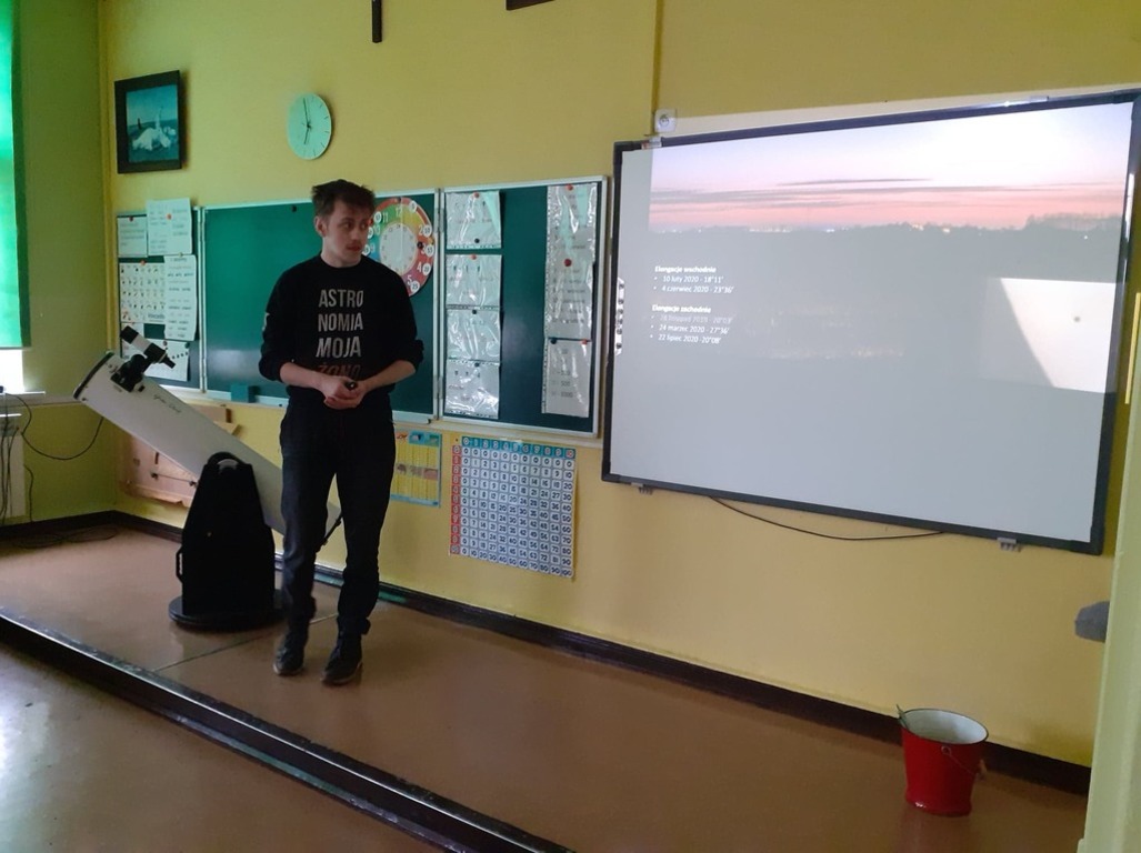 W piątek, na godzinie wychowawczej, klasy III, IV i Va miały możliwość dosięgnąć gwiazd, a dokładniej mówiąc posłuchać wykładu „Co w niebie błyszczy”. Pod takim tytułem była prezentacja naszego dzisiejszego gościa .