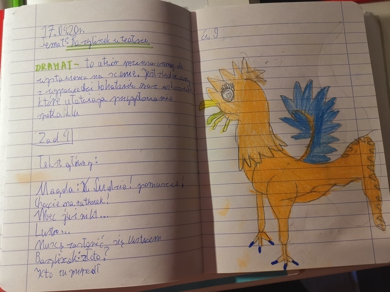 Minęło już kilka tygodni naszej wspólnej przygody ze zdalnym nauczaniem. Gratuluję Wam systematyczności, zaangażowania i super pomysłów. Przyszedł czas, aby się nimi pochwalić. Zapraszam do obejrzenia galerii prac uczniów kl. 4, 5a, 6a i 6b, które powstały w nawiązaniu do realizowanych na lekcjach języka polskiego tematów. Są to m.in. portrety pani Twardowskiej i Bazyliszka, drzewa genealogiczne bogów greckich i projekty o muzeach.