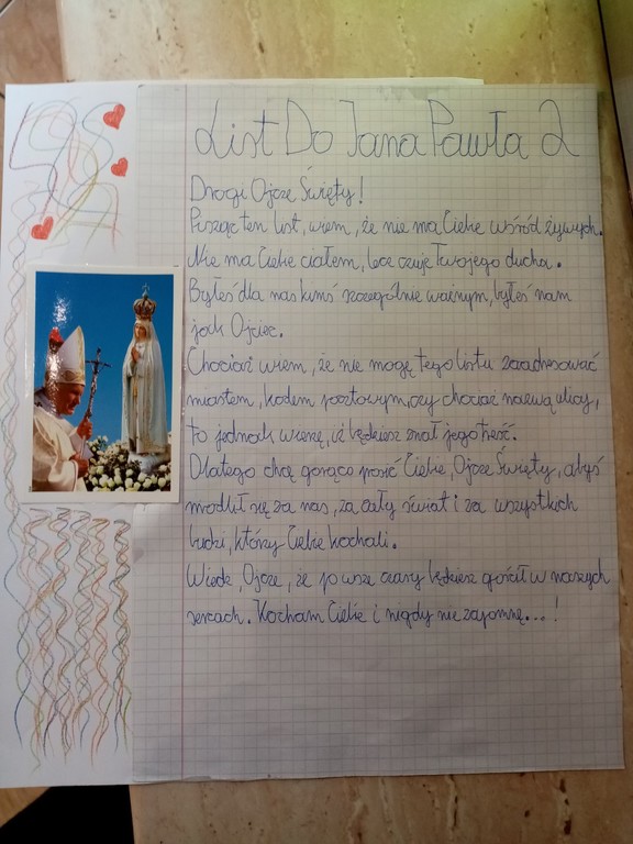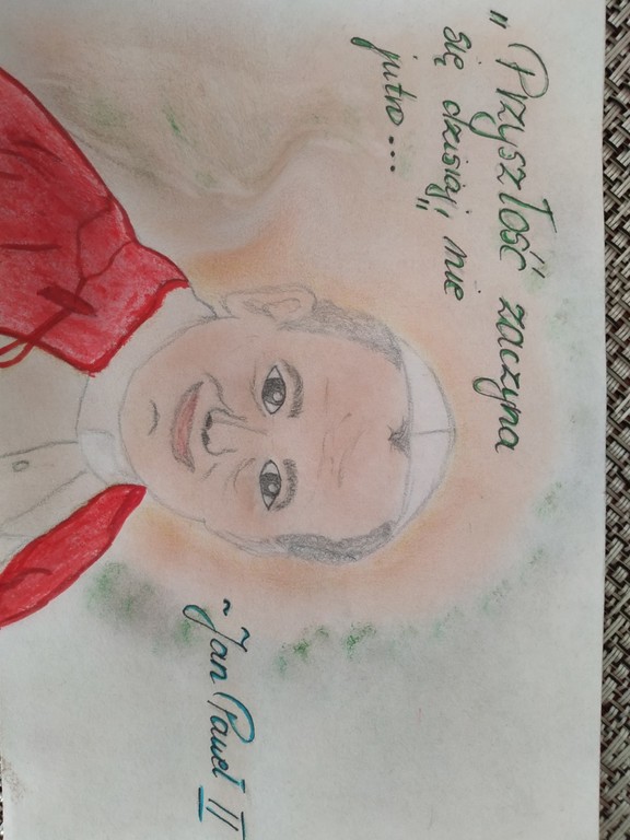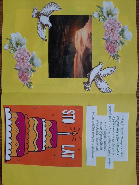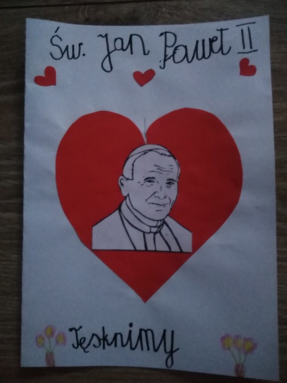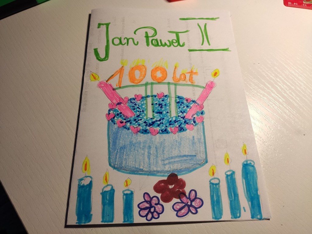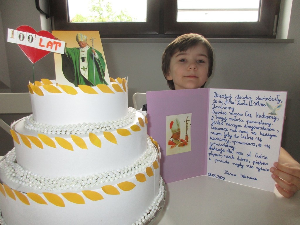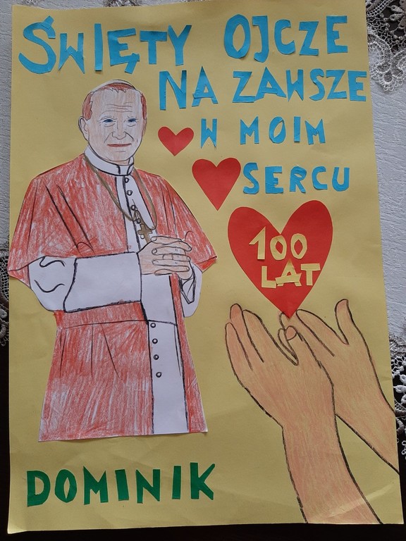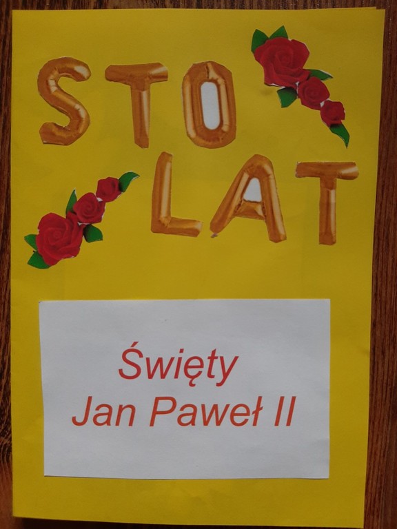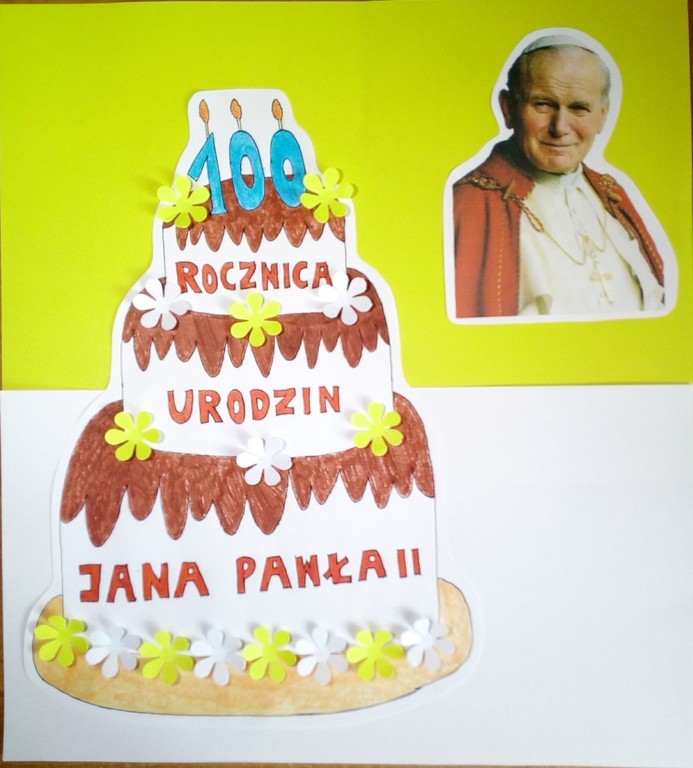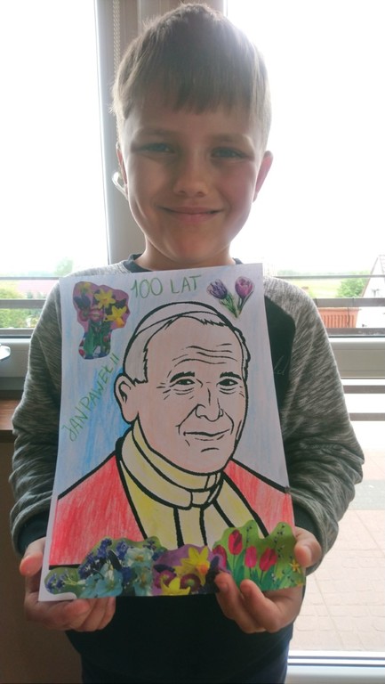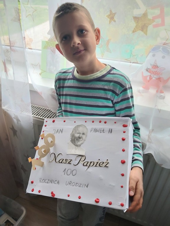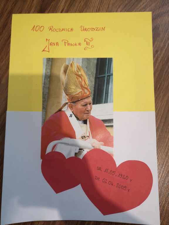 Kilka dni temu, dokładnie w poniedziałek 18 maja cała Polska świętowała 100 urodziny Jana Pawła II. Uczniowie naszej szkoły, na lekcjach religii też mieli okazję, by poznać lepiej osobę Jana Pawła II, Jego życie, pontyfikat oraz drogę do świętości. Mogli też zaśpiewać ulubioną pieśń Jana Pawła II - BARKĘ, ułożyć puzzle oraz sprawdzić swoją wiedzę o Karolu Wojtyle.