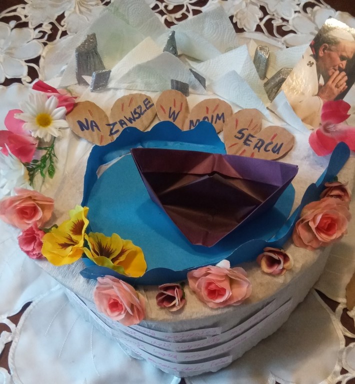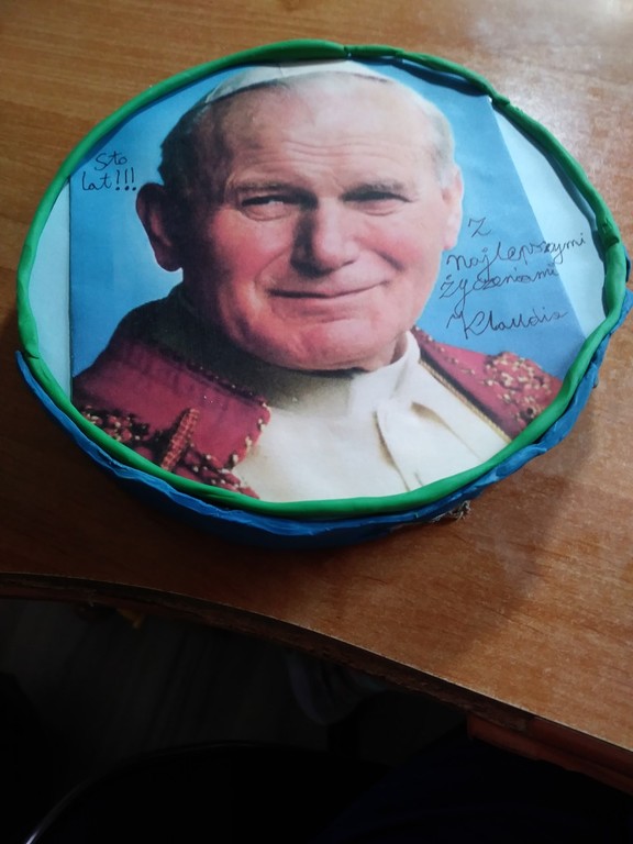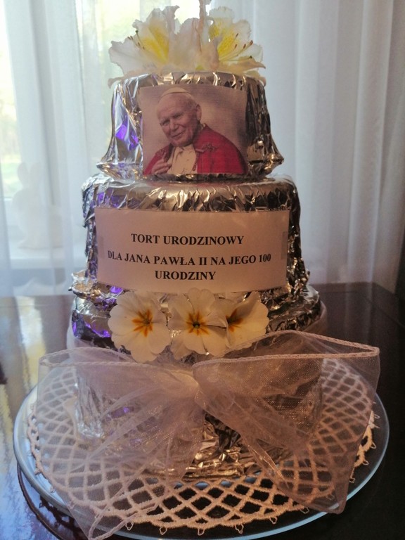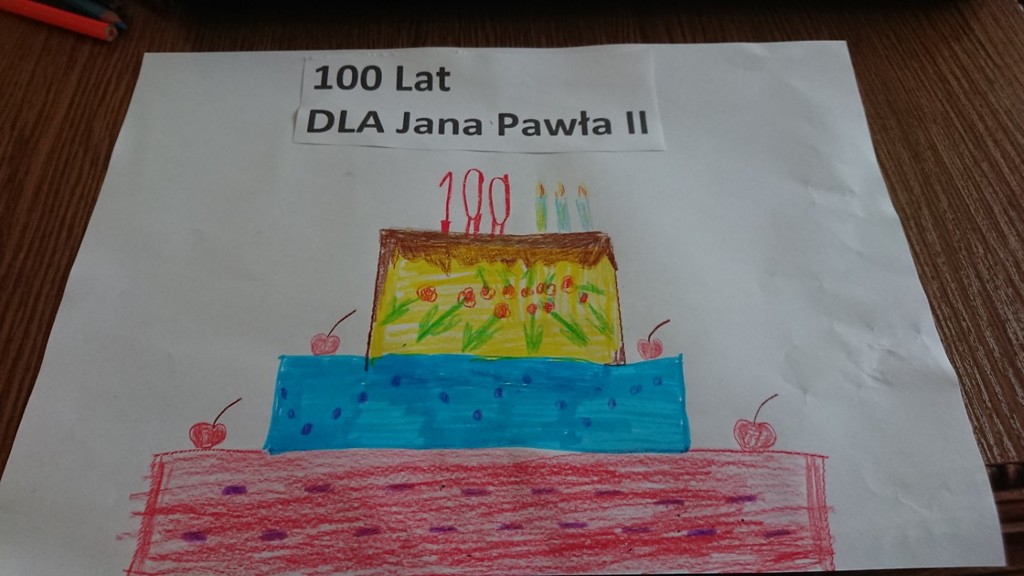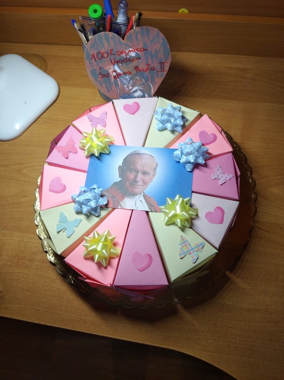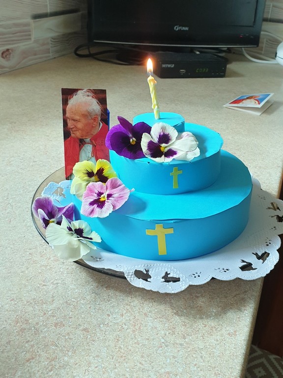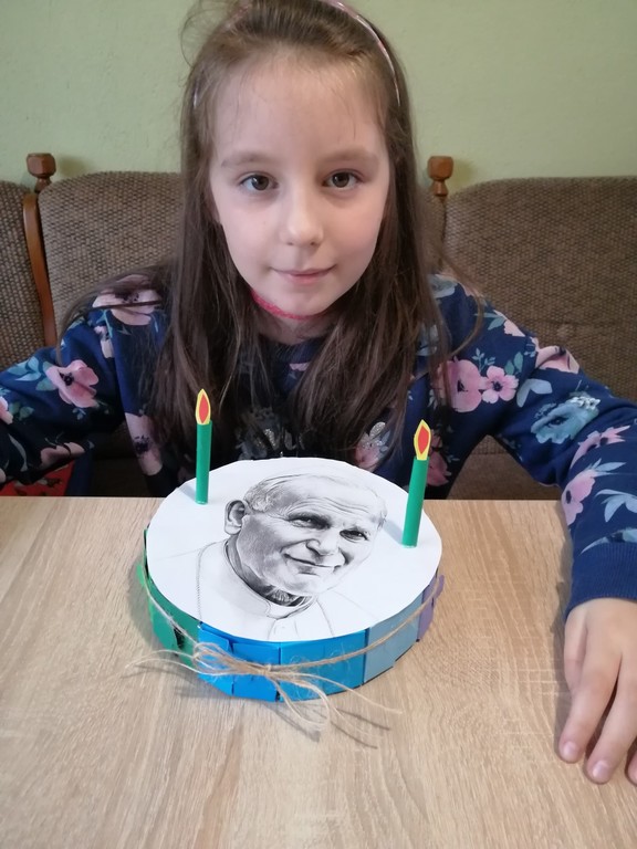 Niektórzy udali się też na multimedialną wycieczkę do Wadowic i Muzeum Jana Pawła II Prezentem dla naszego kochanego papieża są wykonane przez nich laurki, kartki pocztowe, upieczone lub wykonane z papieru torty a nawet napisany wiersz i życzenia.