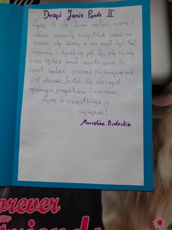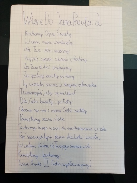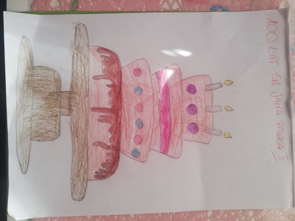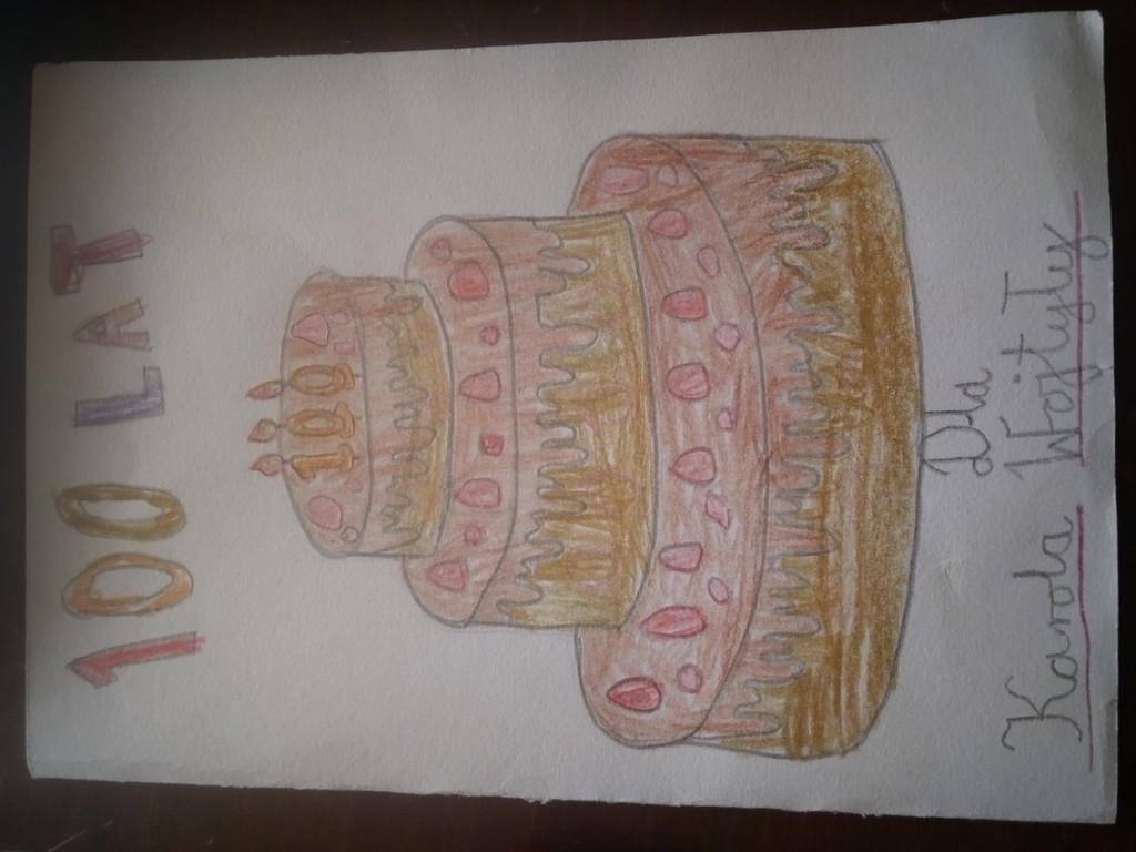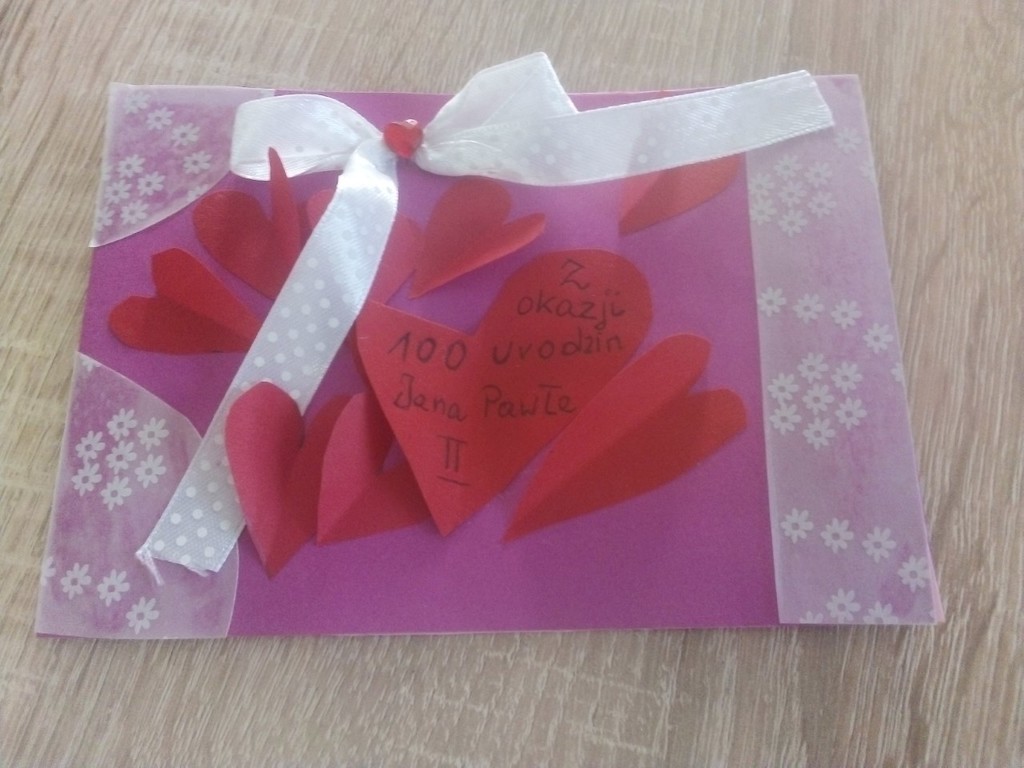 Niektórzy udali się też na multimedialną wycieczkę do Wadowic i Muzeum Jana Pawła II Prezentem dla naszego kochanego papieża są wykonane przez nich laurki, kartki pocztowe, upieczone lub wykonane z papieru torty a nawet napisany wiersz i życzenia.
