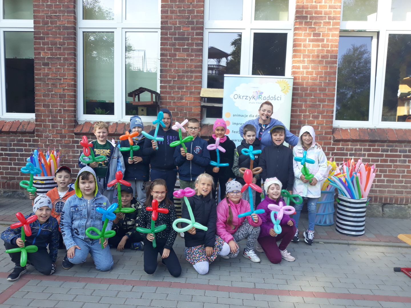 22 września w naszej szkole , odbyły się Warsztaty Balonowe. Podczas warsztatów każdy uczeń miał szanse samodzielnie stworzyć balonowego pieska, pszczółkę , kwiatka oraz miecz. Stosując się do prostych wskazówek animatorki , dzieci poradziły sobie doskonale.Dzięki tej niecodziennej lekcji w całej szkole zrobiło się bardzo wesoło i kolorowo, a radosna i twórcza zabawa rozbudziła wyobraźnię wszystkich dzieci.