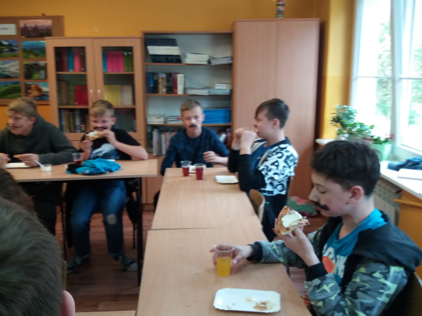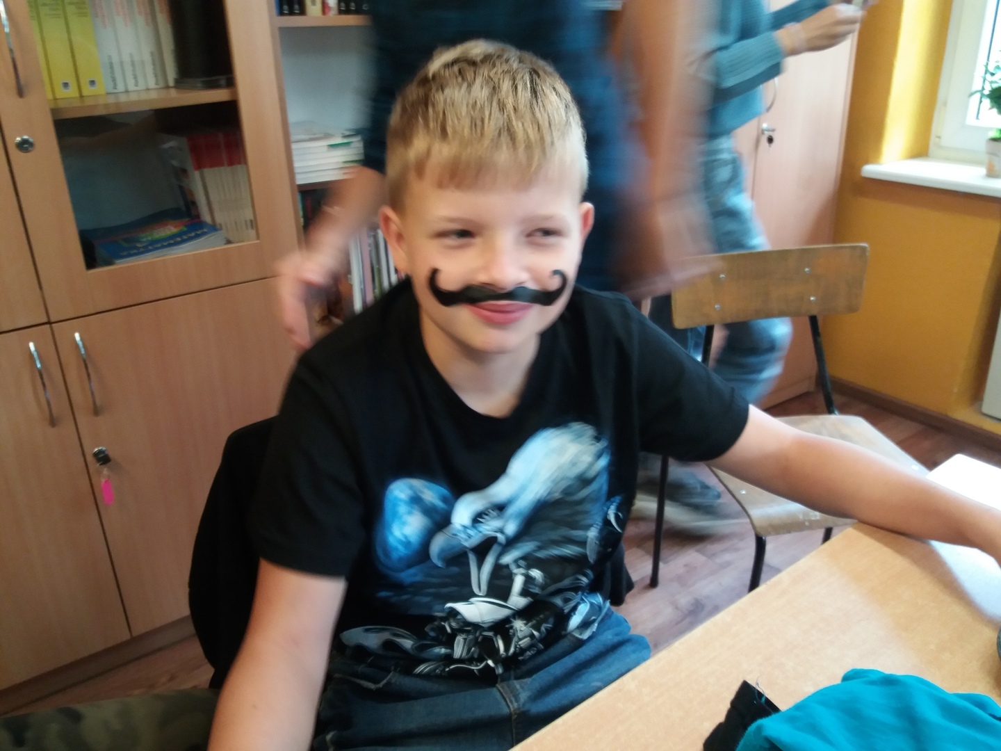 Jednak my obchodziliśmy je już w piątek (25.09). W szkole dominował kolor niebieski. Dziewczęta z poszczególnych klas przygotowały dla swoich kolegów niespodzianki. Były drobne upominki i smaczne przekąski. Klaudia, Magda i Miriana z 7a namalowały swoim kolegom fantazyjne wąsy. Było zabawnie