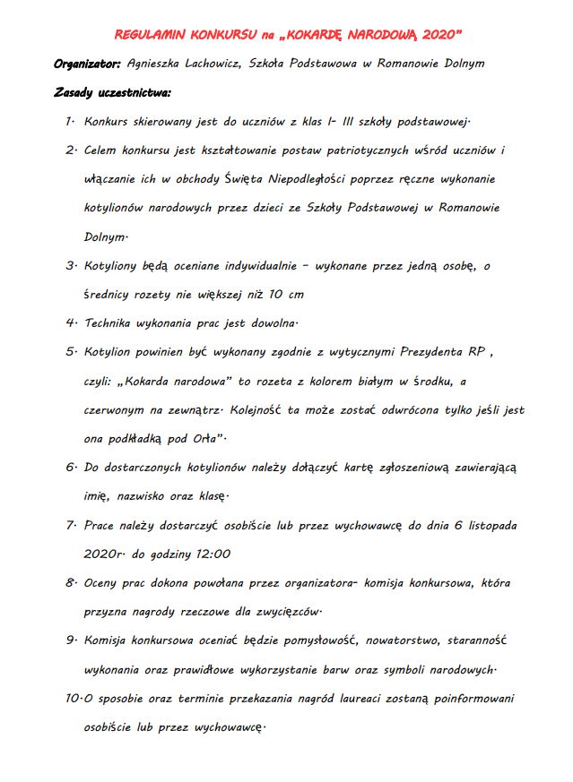 Konkurs na Kokardę Narodową 2020 dla klas 1-3
