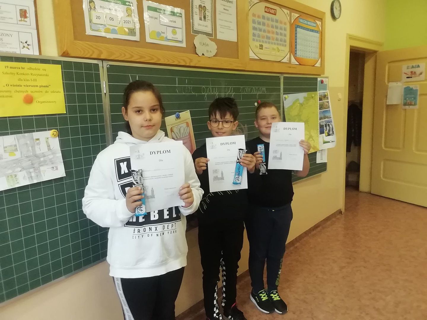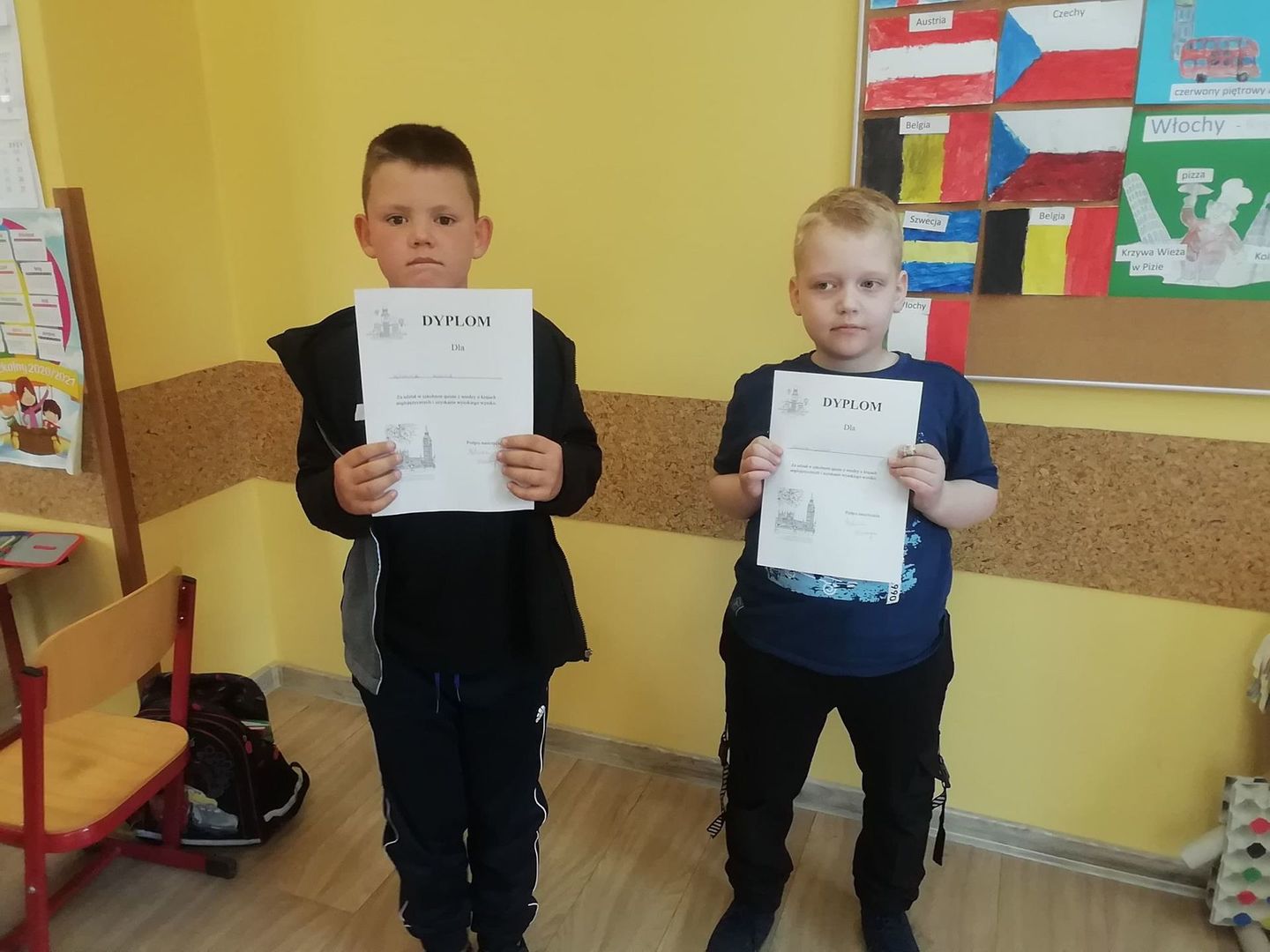 W dniu 13. 05. 2021r., uczniowie klas I-III, wzięli udział w quizie dotyczącym wiedzy o krajach anglojęzycznych. Celem zadania było zapoznanie najmłodszych z kulturą i ciekawostkami o krajach, w których oficjalnym językiem jest język angielski. Wszyscy uczniowie z zaangażowaniem uczestniczyli w zajęciach. Dzieci, które zdobyły największą liczbę punktów, otrzymały dyplom, słodką niespodziankę oraz ocenę celującą z języka angielskiego.
