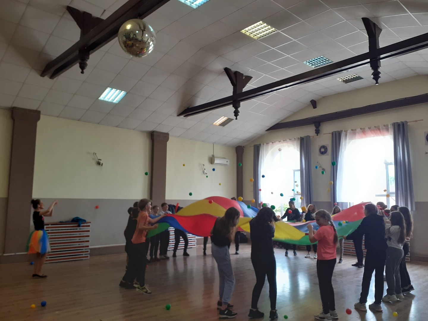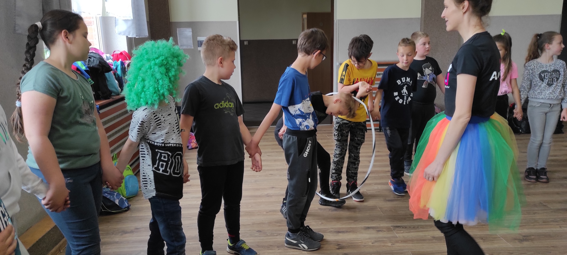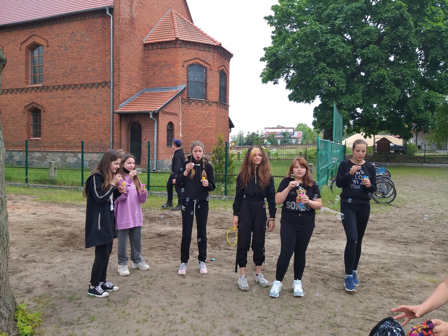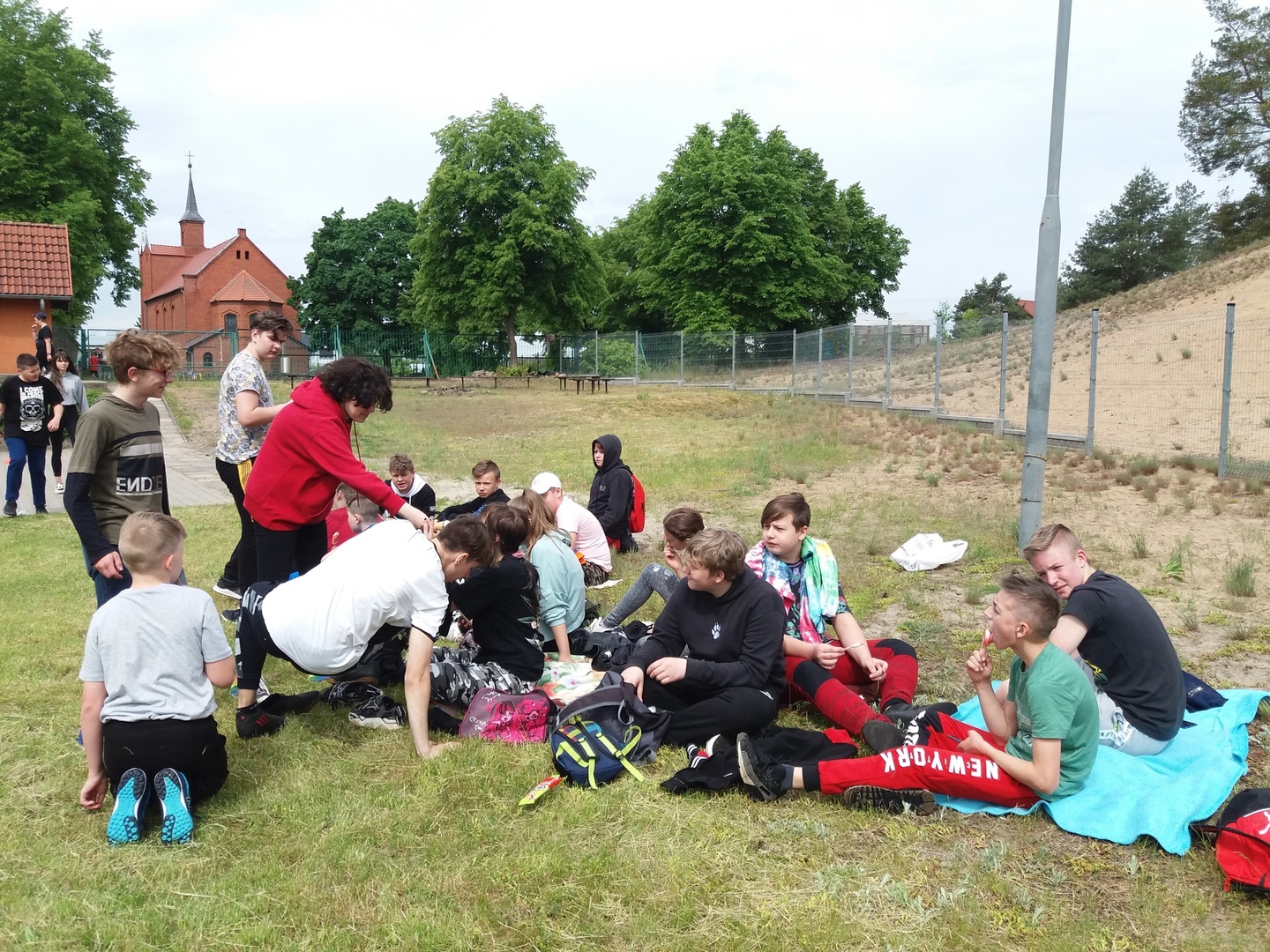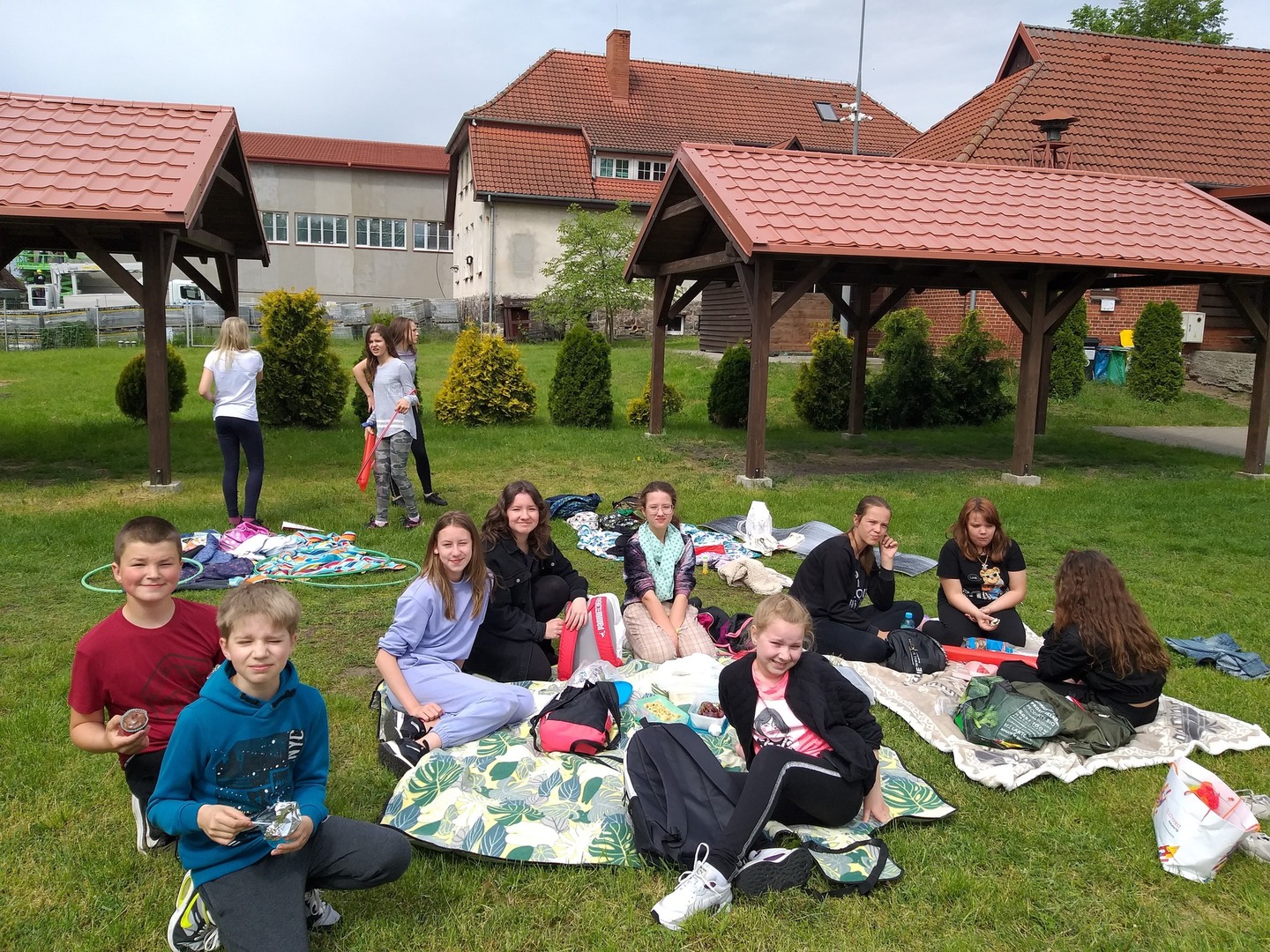 Świętowanie rozpoczęło się o godzinie 9 od powitania i życzeń, które całej społeczności uczniowskiej złożyły pani dyrektor i przewodnicząca samorządu uczniowskiego. Z wychowawcami w klasach uczniowie grali w gry planszowe, rozwiązywali zagadki i quizy. Na boisku za szkołą zorganizowano międzyklasowe rozgrywki w piłkę nożną, palanta, zbijanego. Chętni ćwiczyli na siłowni, spacerowali, puszczali bańki mydlane. Zmęczeni odpoczywali na kocach piknikowych, racząc się przygotowanymi specjalnie na tę okazję zdrowymi przekąskami. Młodsze dzieci rysowały kredą po chodniku i malowały farbami po strechu. Grupa uczniów uczestniczyła w zajęciach plastycznych - "Anioły dla nowej szkoły", na których tworzyła z masy solnej figurki aniołów. W sali wiejskiej pod kierunkiem animatorek z chodzieskiej Sali Zabaw dla Dzieci Akuku, odbywały się zabawy ruchowe z wykorzystaniem balonów, worków, piłek, hula hop itp.