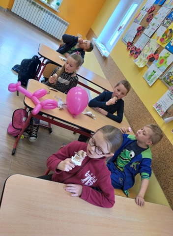 Serdecznie dziękujemy za słodkie niespodzianki (pączki, lody i batoniki) ufundowane przez Radę Rodziców i Sołectwo w Romanowie Dolnym.
