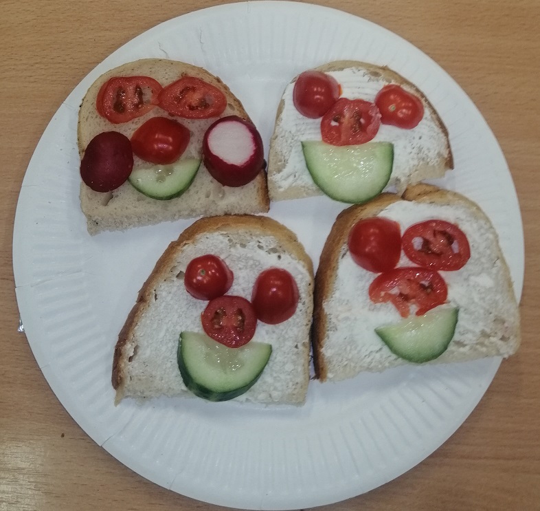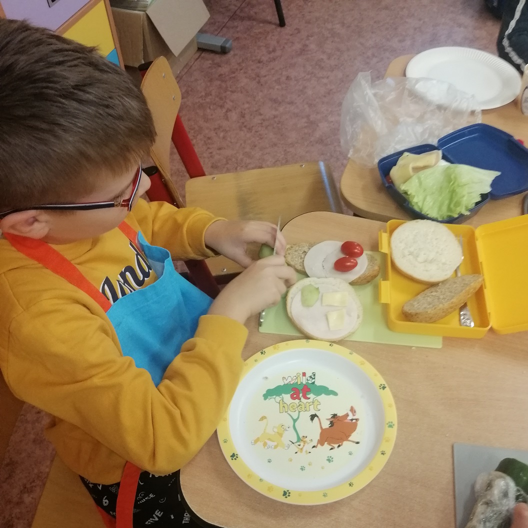 Podczas tygodnia poświęconego zdrowemu odżywianiu, uczniowie klasy 2a dowiedzieli się jak zdrowo się odżywiać. Uczniowie przekonali się, jak ważną rolę odgrywa śniadanie dla człowieka, zapoznali się z piramidą żywienia i z wielkim zapałem zabrali się do przygotowywania kanapek. Zrobione przez dzieci kanapki wyglądały pięknie, kolorowo i były pełne witamin. Wszystkim bardzo smakowały. Okazało się, że dzieci lubią warzywa, a najlepiej smakują im kanapki zrobione własnoręcznie. Jednym słowem było smacznie, zdrowo i kolorowo.