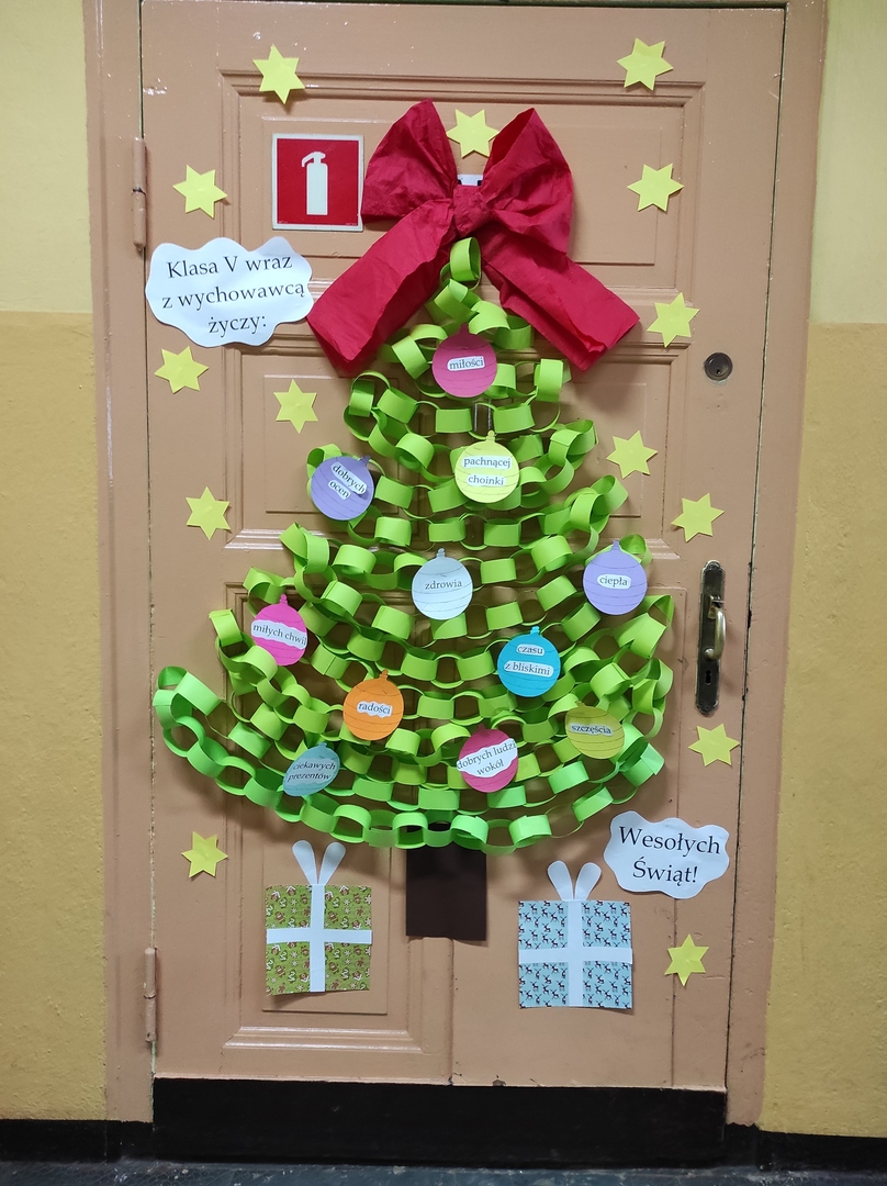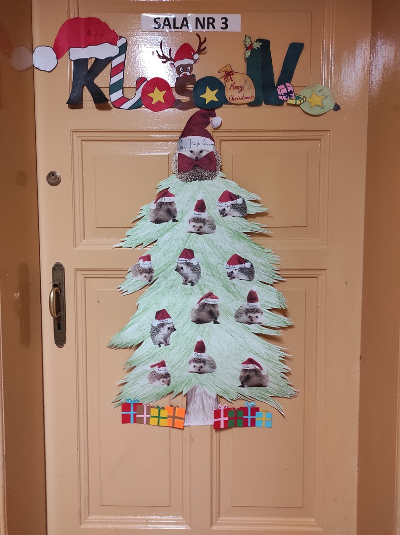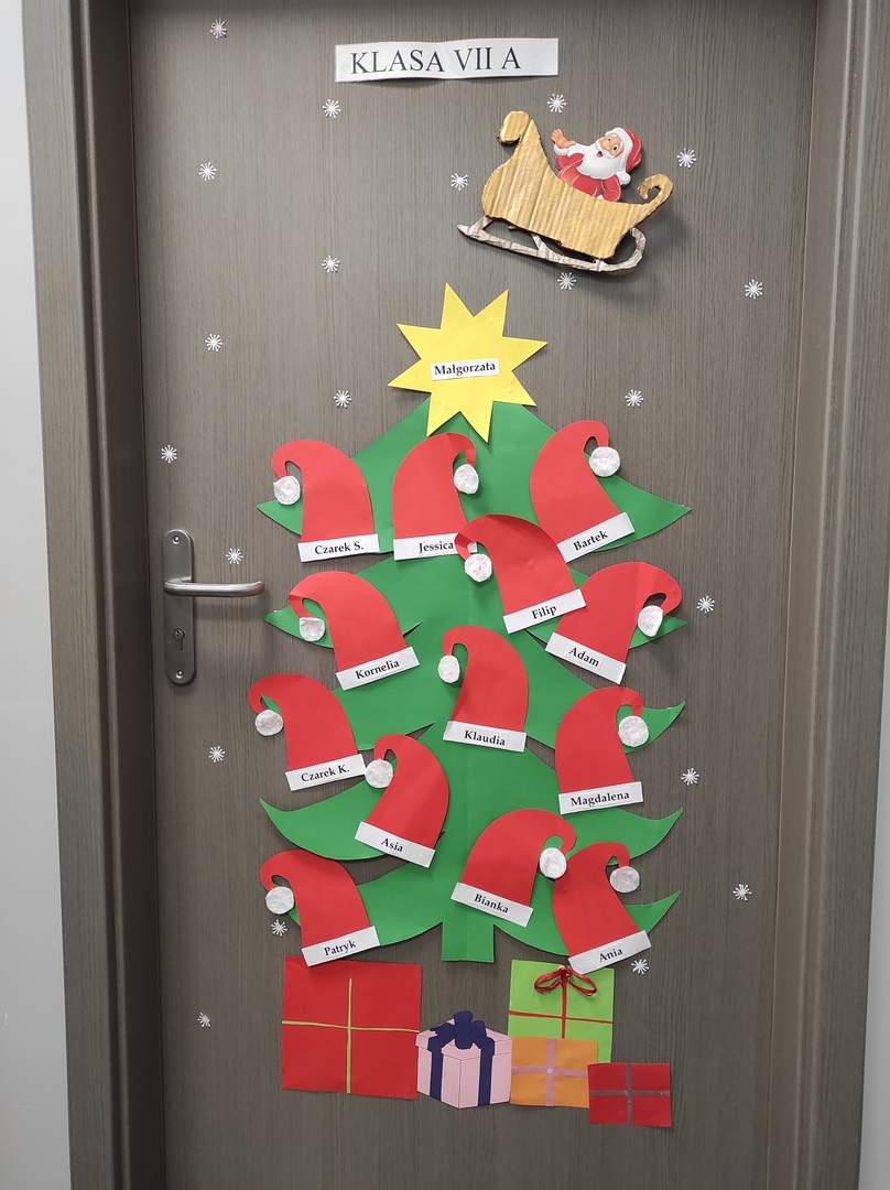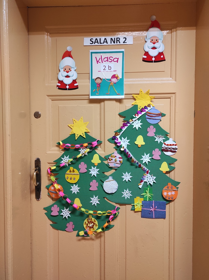 Gratulujemy zwycięzcom, czyli dwóm klasom V oraz VIIa najciekawiej przystrojonych drzwi. Tegoroczny pomysł, by zamiast choinki dekoracje pojawiły się w wejściu do klasy przyniósł wiele inspiracji.