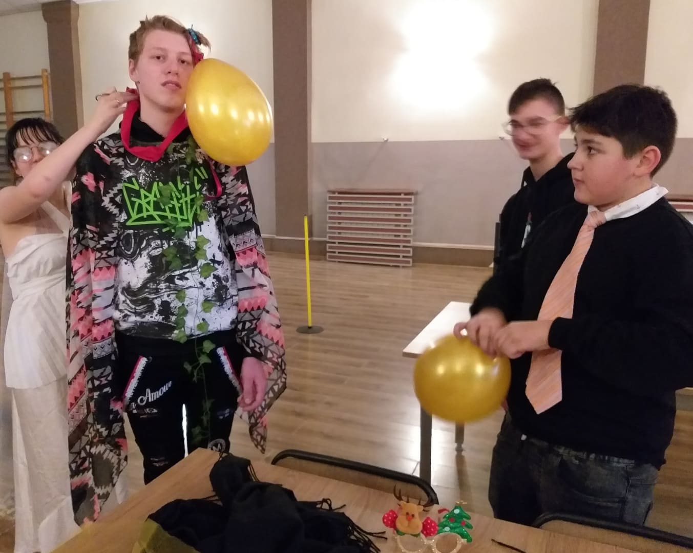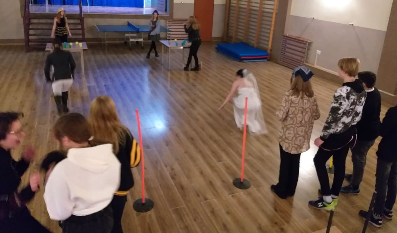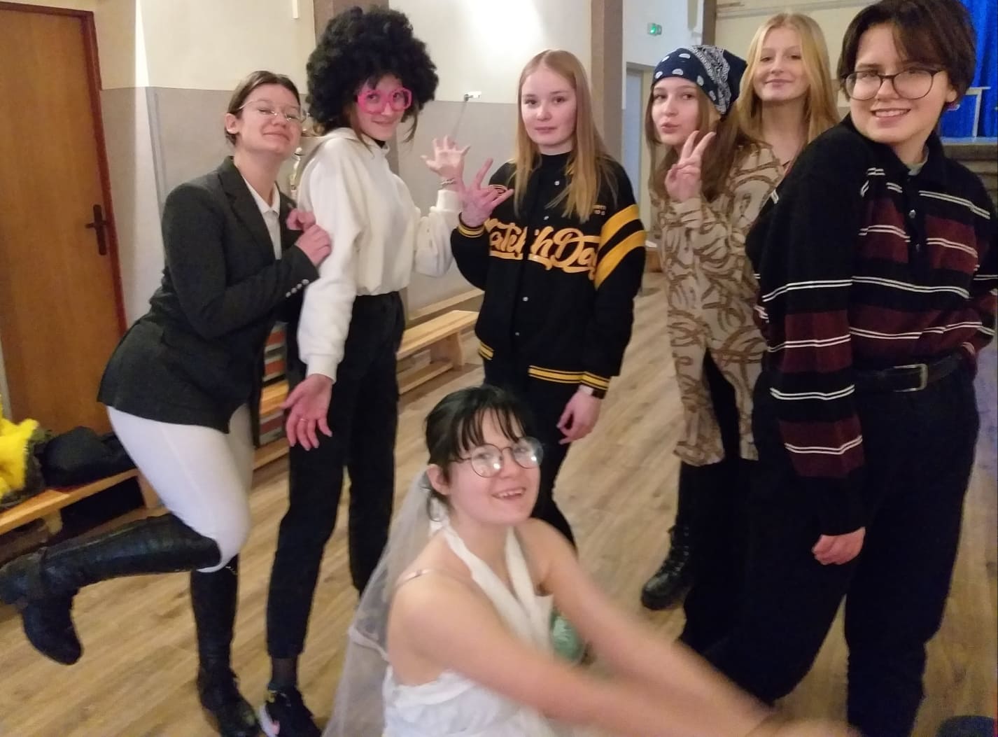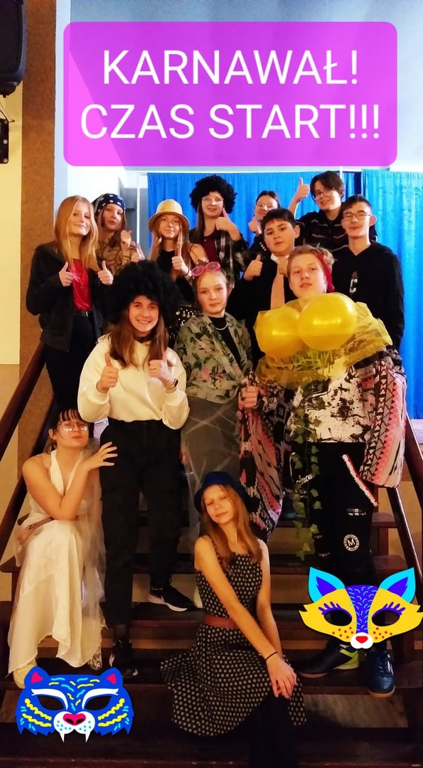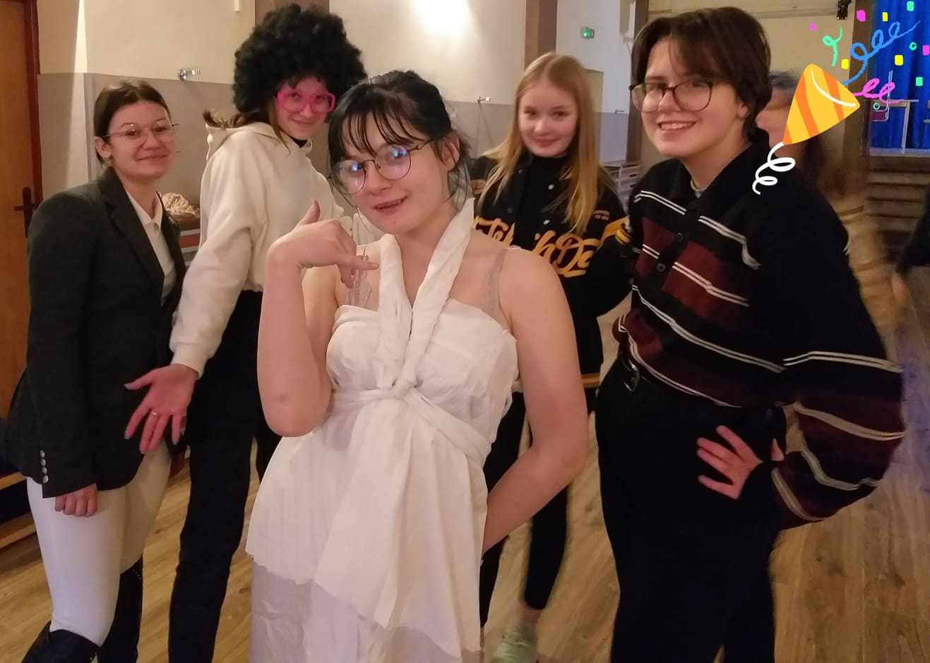 Karnawał to czas balów, maskarad i zabaw. Czwartkowa lekcja wychowania fizycznego w klasie 8b miała na celu doskonalenie i kształtowanie poczucia rytmu, integracji klasowej i stanowiła okazję do zabaw. Klasowe animatorki zadbały o atrakcje i oprawę muzyczną. Klasa podzielona na dwa zespoły rywalizowała z uśmiechem na twarzy i z duchem fair play. Wśród konkurencji znalazły się m.in. wyścigi rzędów, a także konkurs na nietypowe przebranie karnawałowe. Zwycięzcami okazała się cała klasa, która zachwyciła przebraniami i poczuciem humoru.