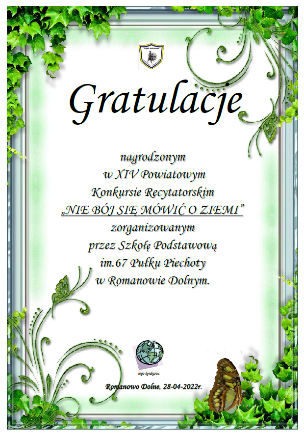 XIV Powiatowy Konkurs Recytatorski "NIE BÓJ SIĘ MÓWIĆ O ZIEMI" wyniki