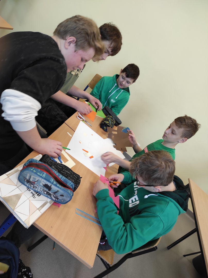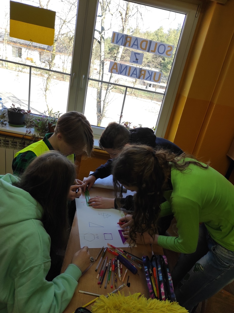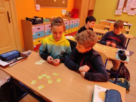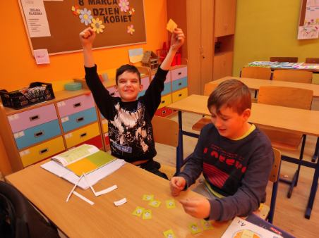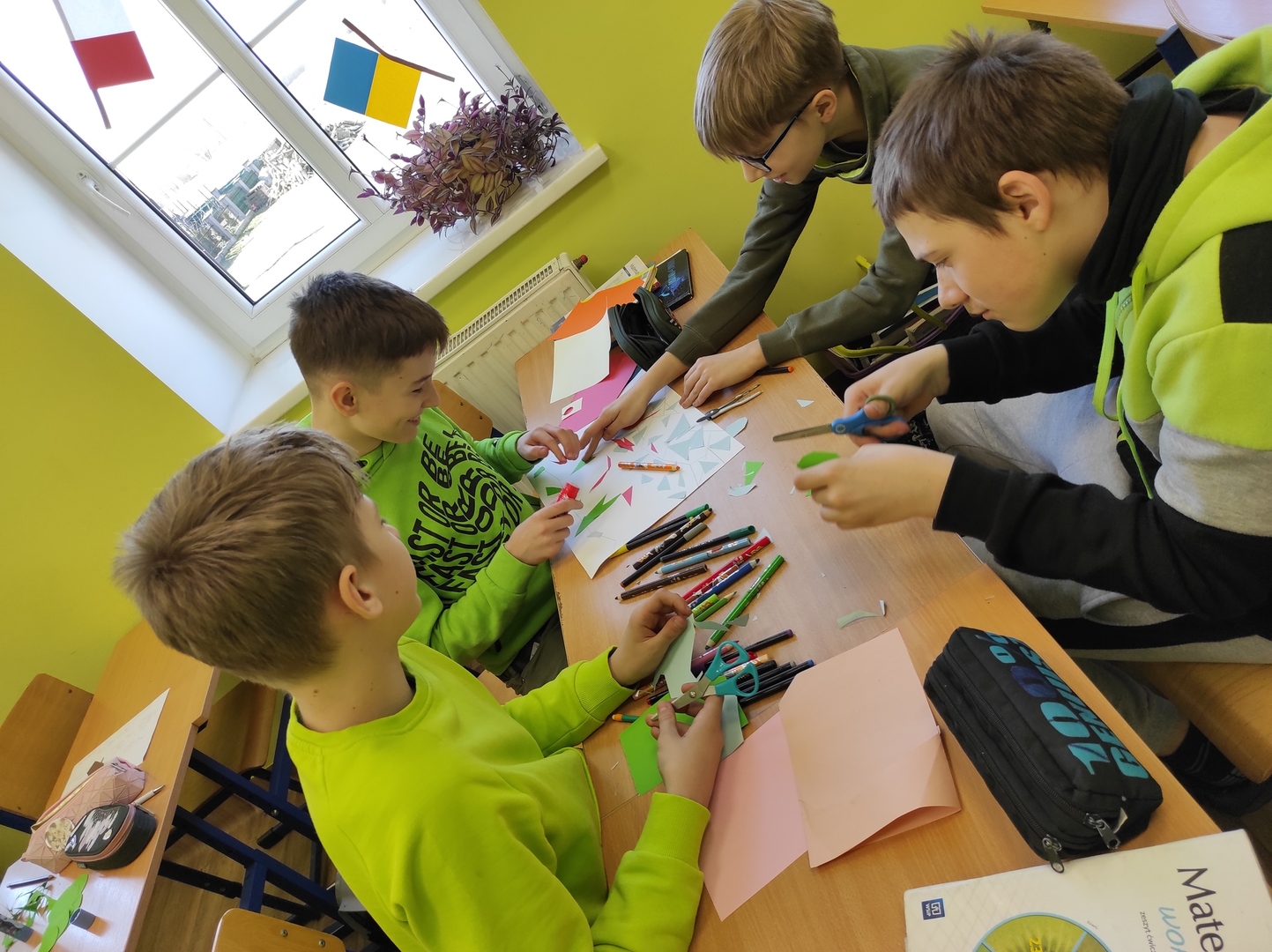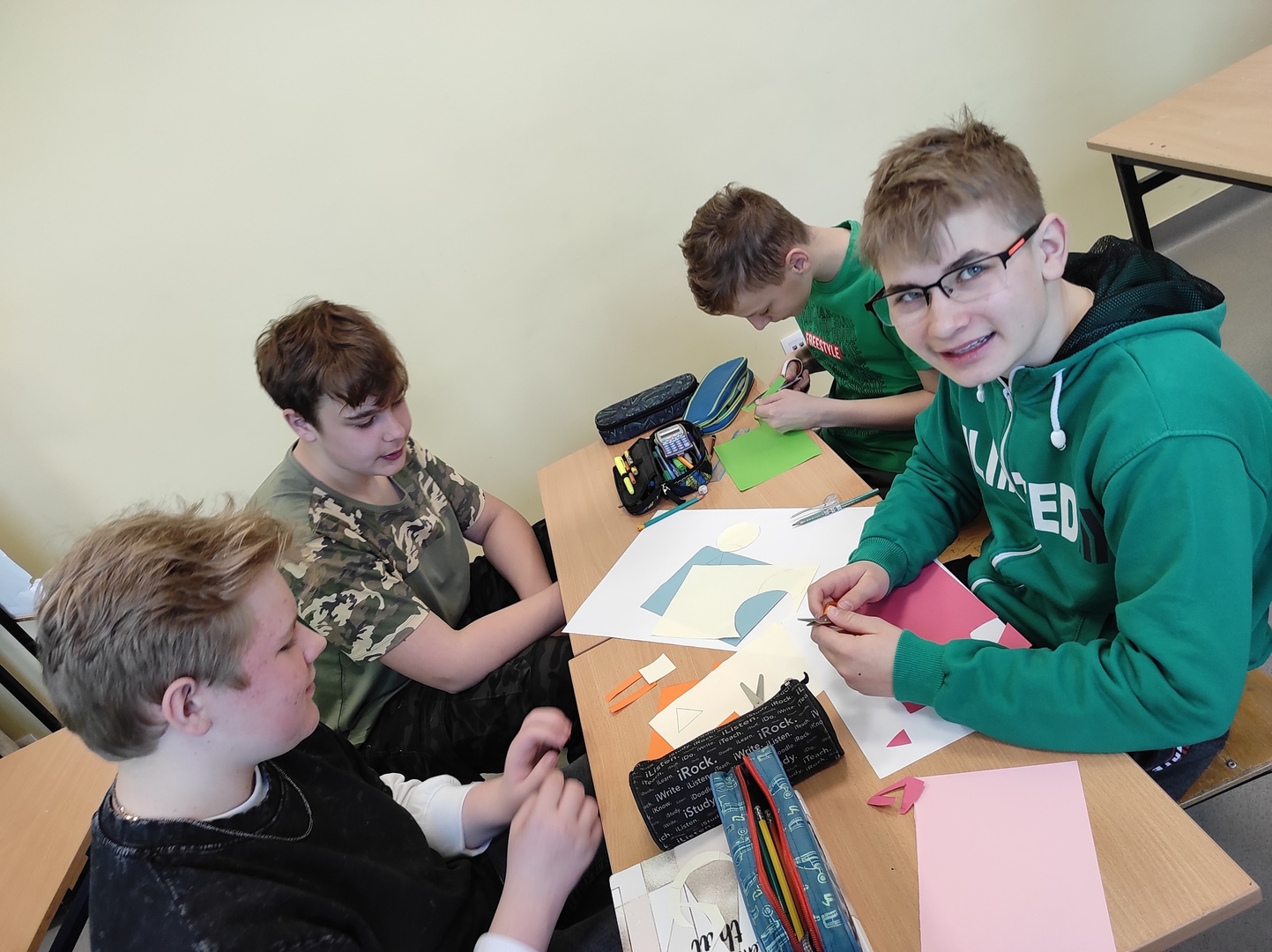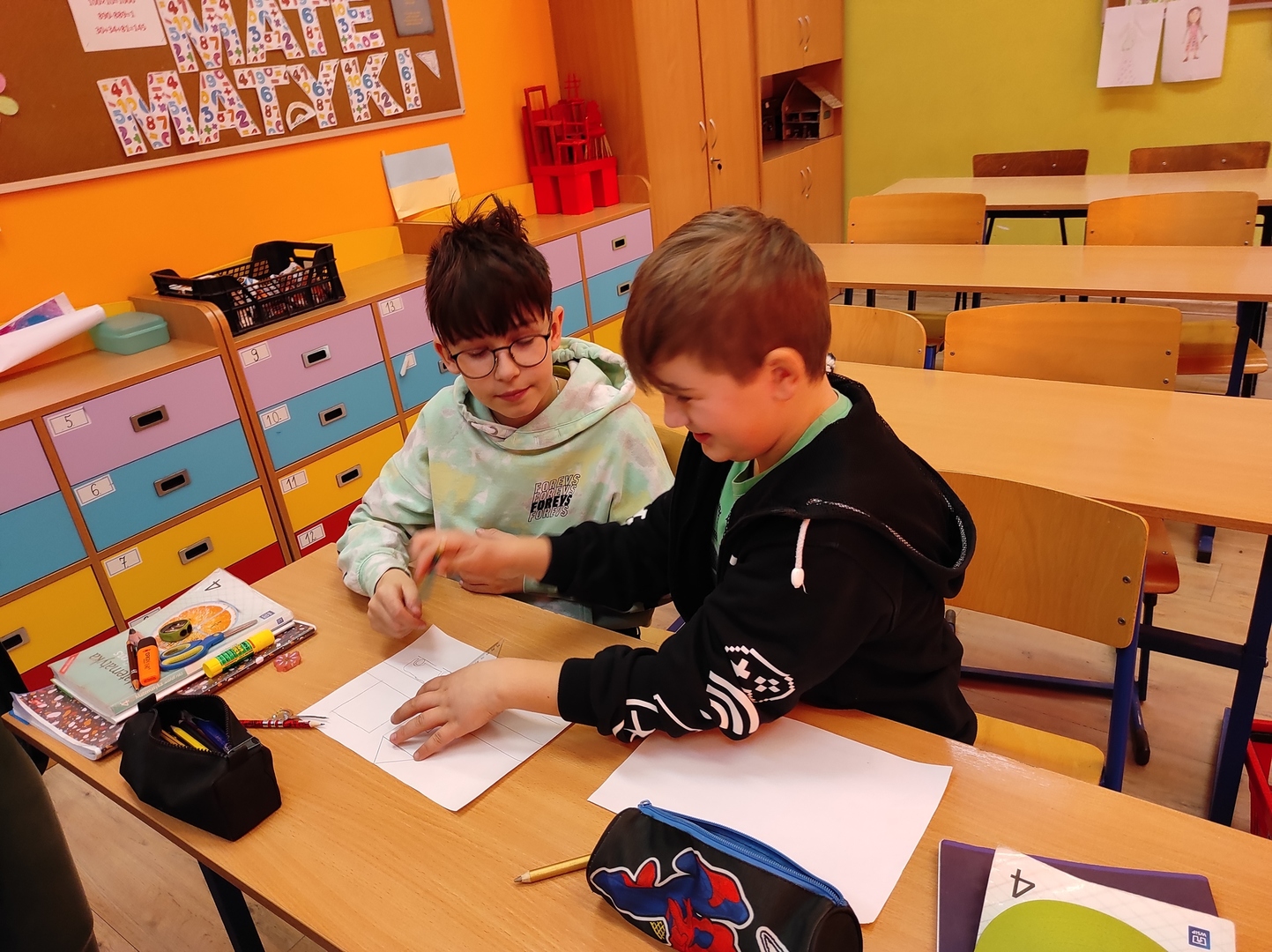 Uczniowie bawili się matematyką wykonując różne zadania -rozwiązywali krzyżówki, grali w karty Grabowskiego, w memory matematyczne, szukali daty urodzenia w Liczbie ∏, wykonywali mozaiki z figur geometrycznych, plansze dydaktyczne, rozwiązywali zadania interaktywne, wykonywali rysunki zbudowane z kół i okręgów przy użyciu cyrkla i wiele innych.