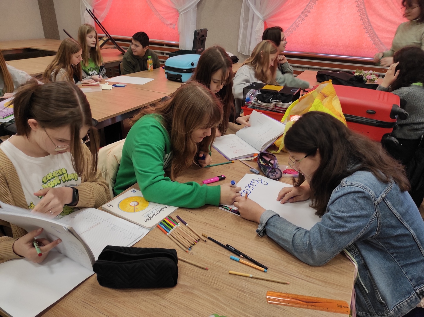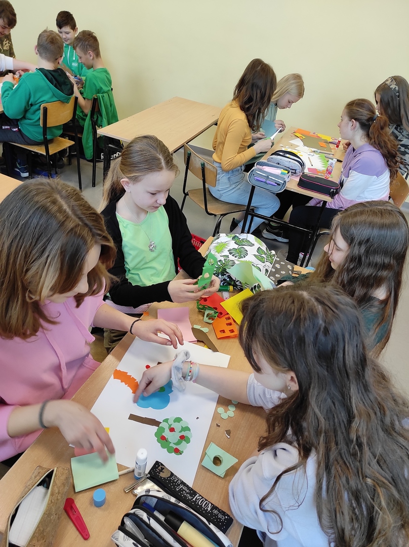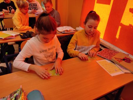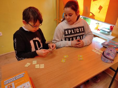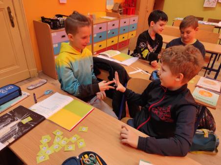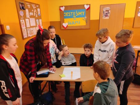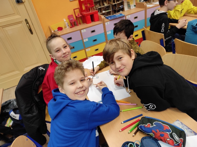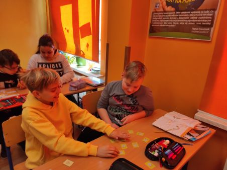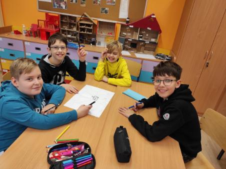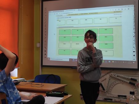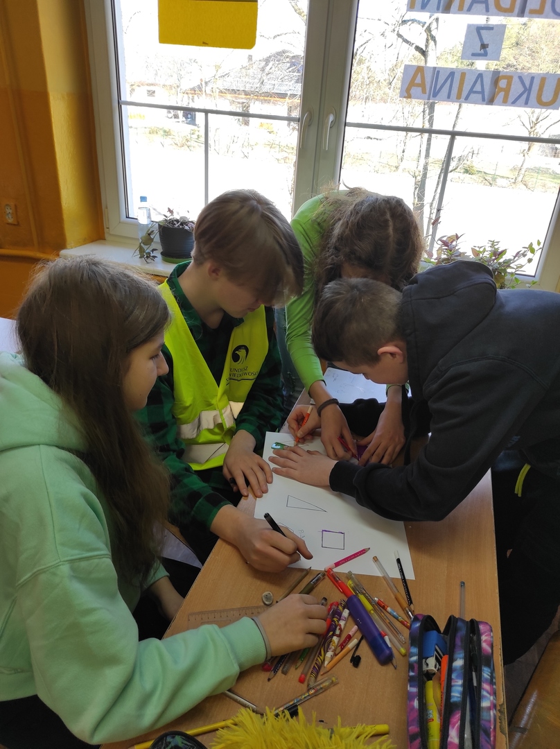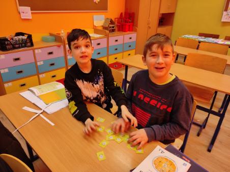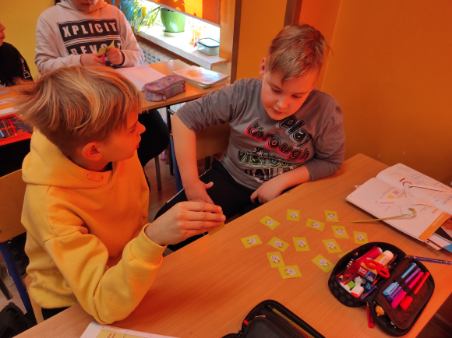 Uczniowie bawili się matematyką wykonując różne zadania -rozwiązywali krzyżówki, grali w karty Grabowskiego, w memory matematyczne, szukali daty urodzenia w Liczbie ∏, wykonywali mozaiki z figur geometrycznych, plansze dydaktyczne, rozwiązywali zadania interaktywne, wykonywali rysunki zbudowane z kół i okręgów przy użyciu cyrkla i wiele innych.