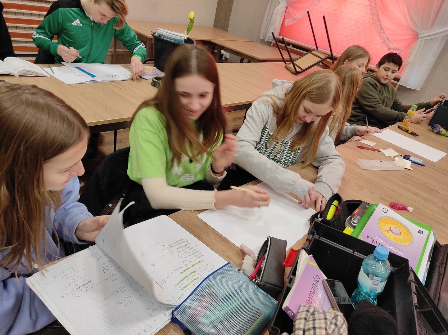 Ponadto podczas obchodów Święta Matematyki i Dnia Liczby ∏ uczniowie zmagali się z różnymi zadaniami pod okiem nauczycieli matematyki Pań: Doroty Wawryk-Kubiś, Magdaleny Mroczek i Wioletty Jans.