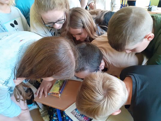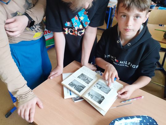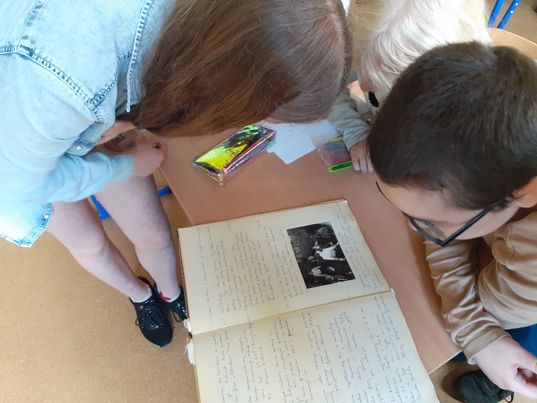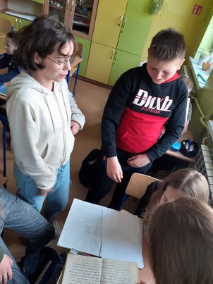 Na ostatnich zajęciach uczniowie czytali kronikę Szkoły Podstawowej w Romanowie Górnym oraz kronikę drużyny harcerskiej również tam istniejącej. To prawdziwa skarbnica wiedzy. Dzieci mogły rozpoznac nawet swoich bliskich na zdjęciach, które znajduja się w kronikach.