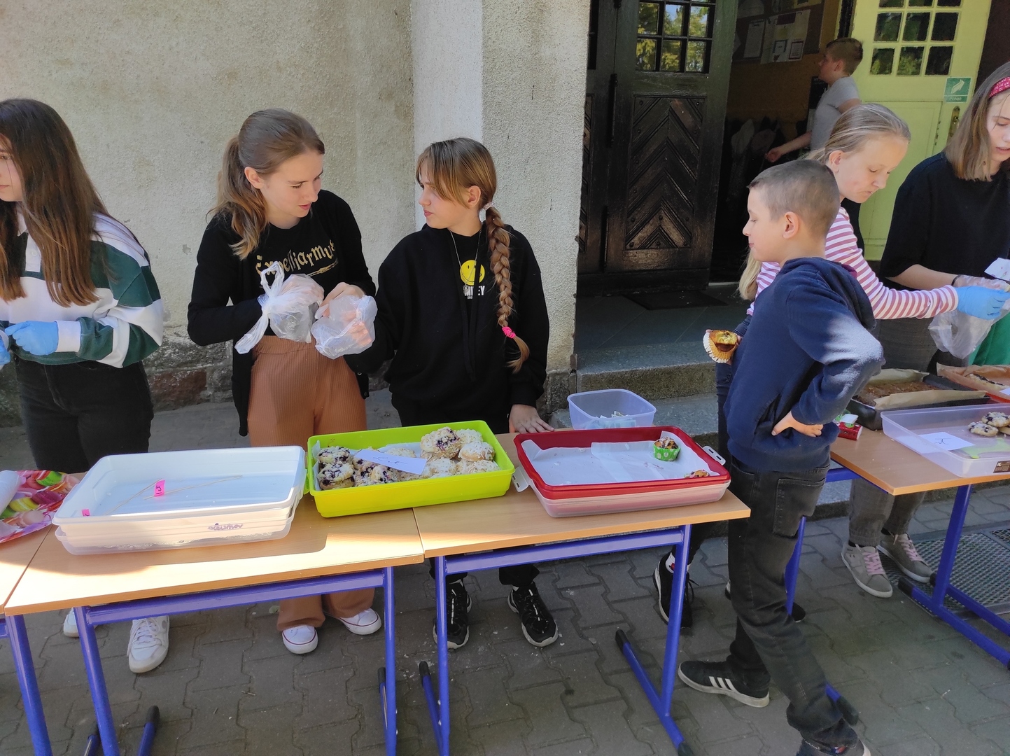 Dnia 3 czerwca w naszej szkole odbyła się akcja charytatywna „Słodki piątek” pod okiem opiekunów Koła Wolontariatu pani Danuty Grencel i pani Wioletty Jans na rzecz Towarzystwa Pomocy Chorym im. Sługi Bożej St. Leszczyńskiej Hospicjum i Zakładu Opiekuńczo-Leczniczego w Pile. Wolontariusze naszej szkoły przygotowali przepyszne wypieki domowe, które rozeszły się jak „świeże bułeczki” 😊