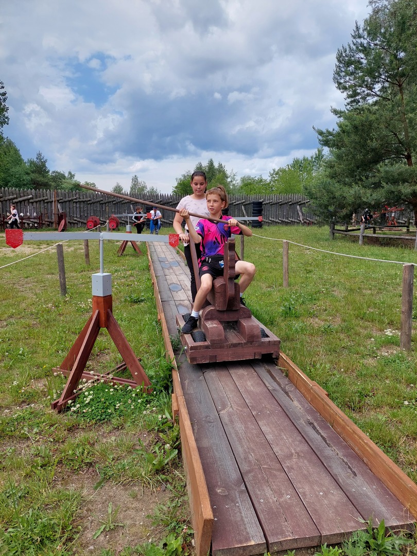 Podróż rozpoczął pobyt w Skansenie Miniatur w Pobiedziskach. W tym samym miejscu byliśmy także w Grodzie na który jest rekonstrukcją wczesnośredniowiecznego grodu piastowskiego i zobaczyliśy tam wystawę machin oblężniczych. Mieliśmy możliwość wypróbowania kuszy, trebusza, czy konia ćwiczebnego dla dzieci, które już w wieku 6 lat siadały na niego, by szkolić swe umiejętności obrony w siodle.