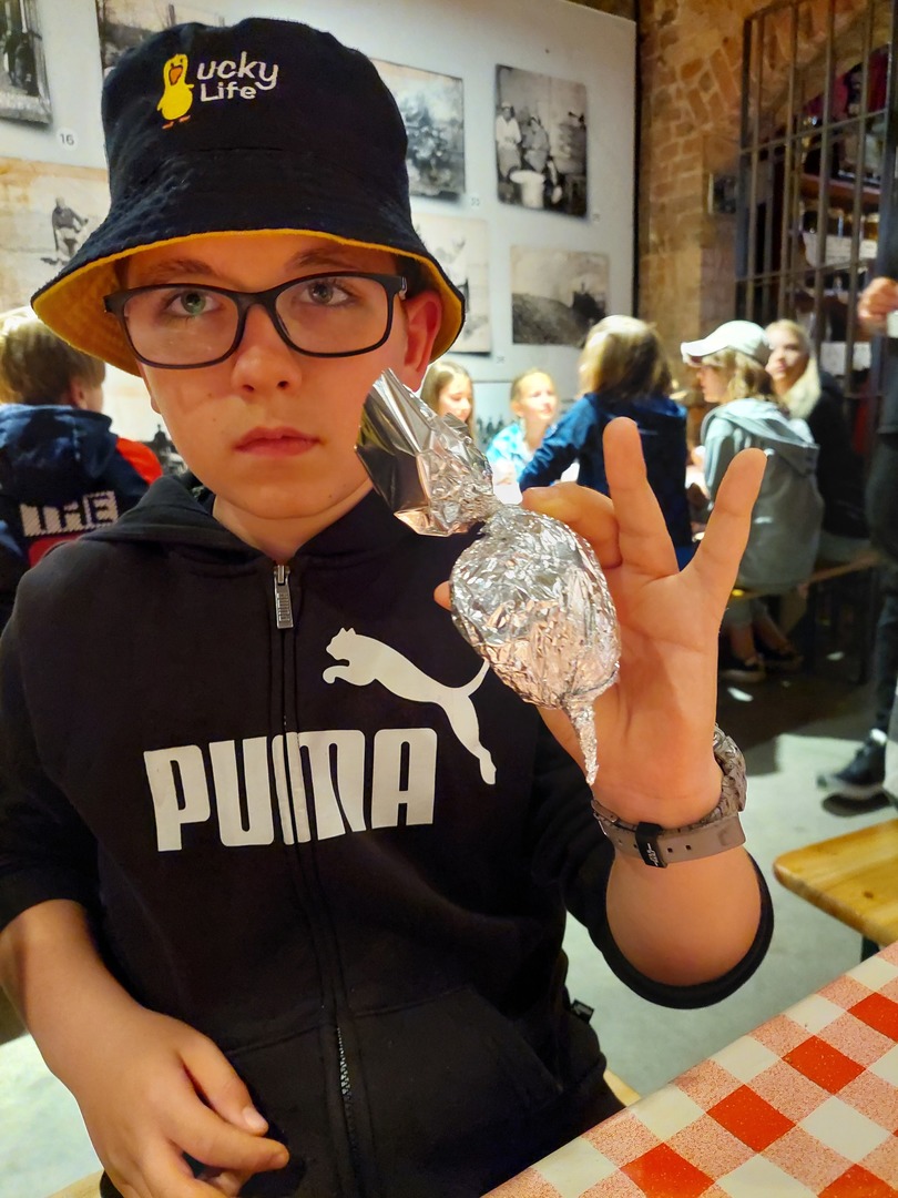 Następnie pojechaliśmy do Muzeum Pyry w Poznaniu. Tam zasmakowaliśmy własnoręcznie przyprawionych, pieczonych pyr i poznaliśmy niezwykle bogatą historię tego pochodzącego z Peru warzywa .
