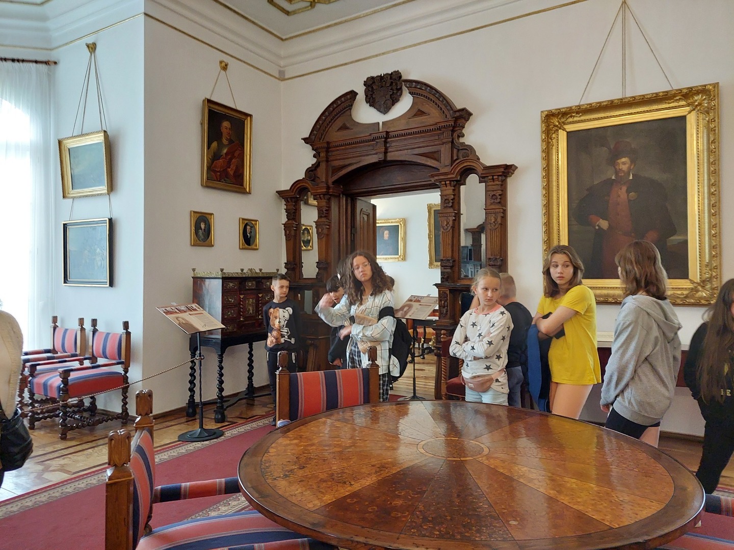 Z Borówca pojechaliśmy do Rogalina. Zwiedziliśmy tam pałac, a w nim powozownię, a także galerię obrazów; wędrowaliśmy po malowniczych ogrodach. Skorzystaliśmy także z zaproszenia księdza Adama Pawłowskiego i zobaczyliśy Kościół- Mauzoleum Raczyńskich. Mogliśmy wejść też do podziemi, w których pochowany jest m.in. ostatni przedstawiciel rodu Edward Raczyński- prezydent RP na uchodźstwie.